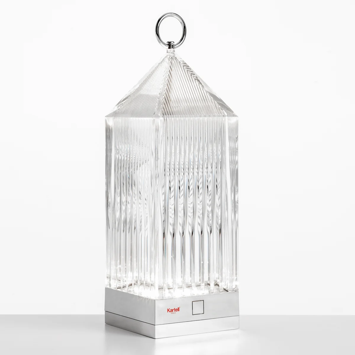 Die Lantern LED-Leuchte von Kartell ist ein stilvoller und zugleich praktischer Begleiter, der bei Dunkelheit den Weg weist. Die kabellose Leuchte in Form einer klassischen Laterne lässt sich für den Innen- sowie Aussenbereich nutzen und ist dank ihres Griffs leicht zu transportieren. Die Idee für die portable Leuchte stammt vom dem italienischen Designer Fabio Novembre und ist ein Ausdruck seiner ganz persönlichen Erfahrungen.