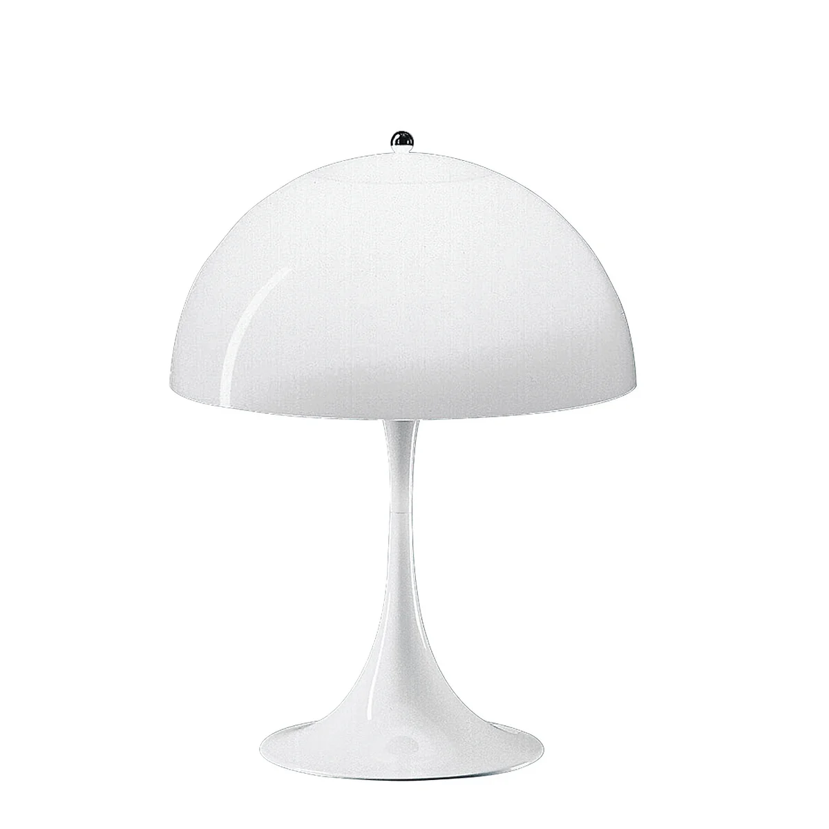 Das organische Design der Panthella Tischleuchte ist an die Form eines Pilzes angelehnt. Auf ihrer Spitze besitzt die Leuchte eine verchromte Kugel. Neben ihrer optischen Funktion dient die Kugel zum Anheben der Deckenplatte der Leuchte, die zum Auswechseln des Leuchtmittels entfernt werden muss. Im Boden der Tischleuchte kann ausserdem nicht benötigtes Kabel verstaut werden.