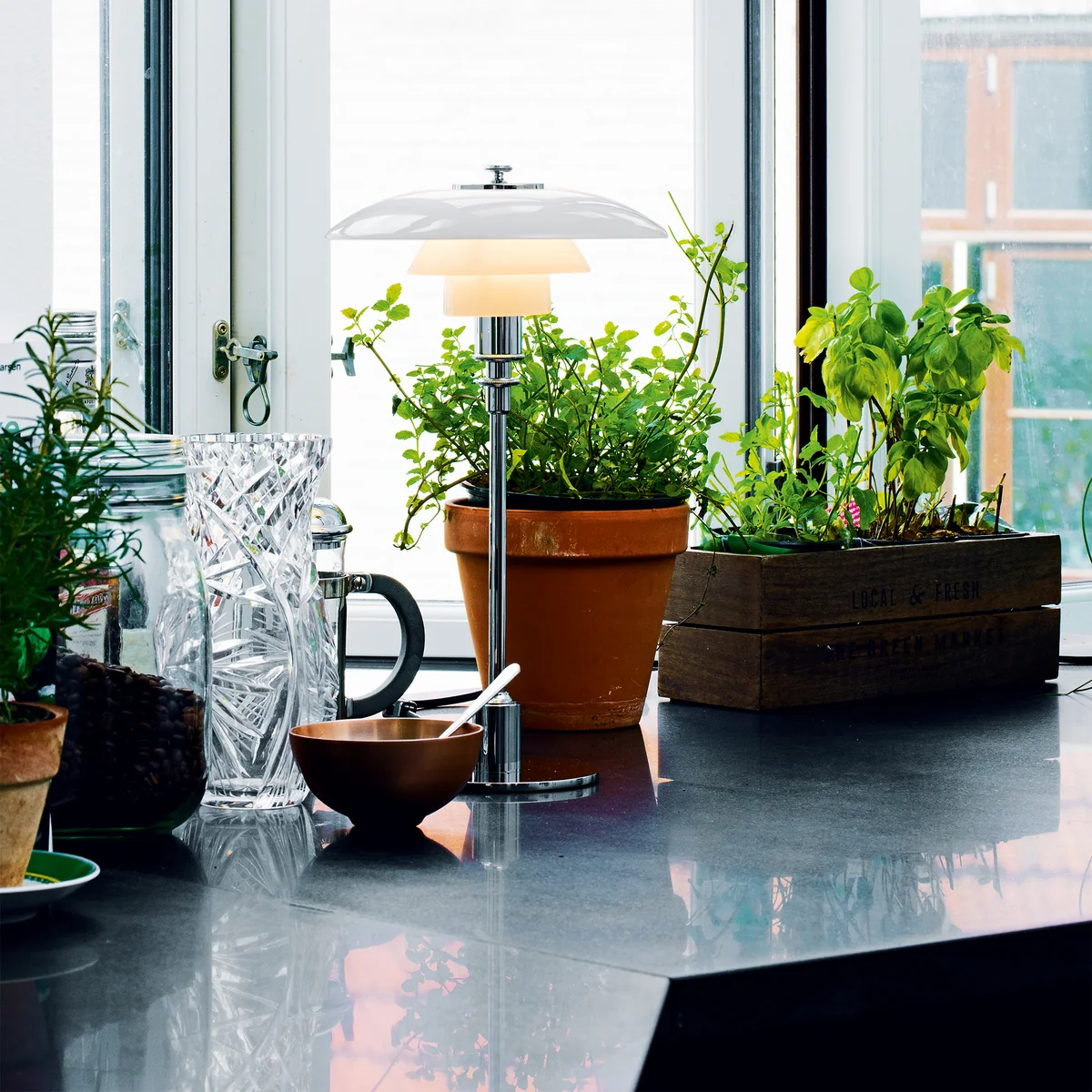 Durch ihre geringe Grösse bietet die PH 2/1 Tischleuchte hervorragende Platzierungsmöglichkeiten in Räumen, in denen kleine Lichtpunkte geschaffen werden sollen, um die Stimmung angenehm zu gestalten und die Ausmasse des Raums zu unterstreichen.