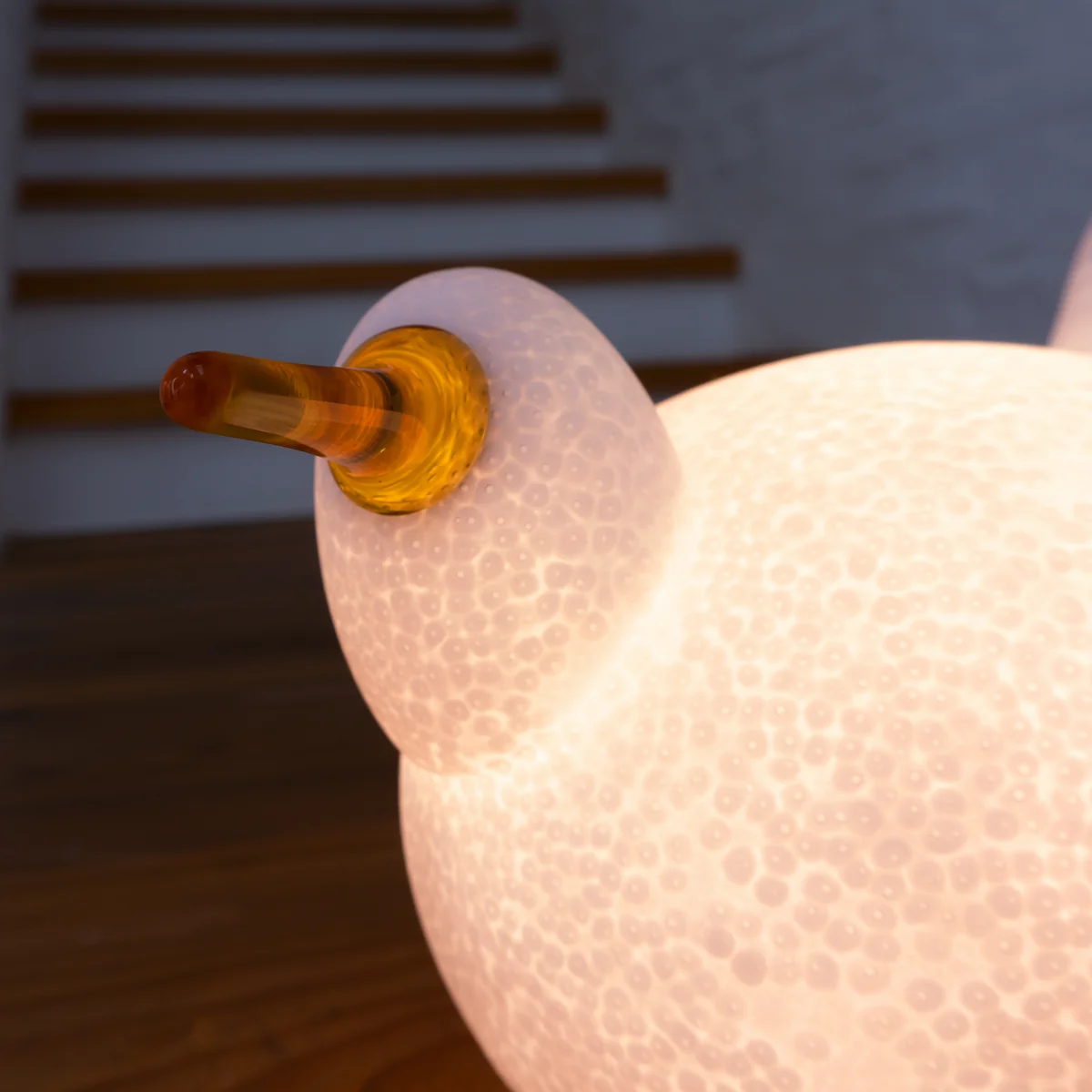 Besonders charmant werden die Leuchten durch die aufgemalten Details, wie Augen und Schnabel. Die Leuchten bestehen aus einem Sockel aus ABS und einem Körper aus farbigem Polykarbonat. Über einen Touch-Schalter mit Dimmer- Funktion wird die Leuchte ein- und ausgeschaltet und aufgeladen wird Linnut mittels Micro-Kabel USB-C und Batterieladegerät.