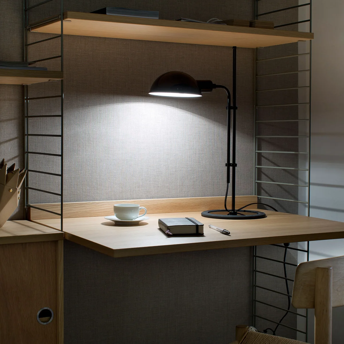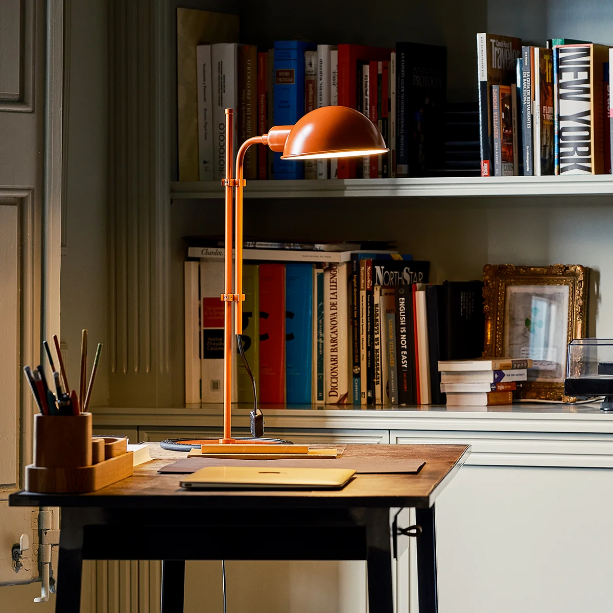 Der Schirm der Funiculí Tischleuchte kann durch Klammern am Schaft nach oben oder unten bewegt werden. So kann die gewünschte Höhe individuell eingestellt werden. Der Diffusor ermöglicht, dass der Schirm um 360 Grad gedreht werden kann, um so das Licht nach Bedarf ausrichten zu können. Das Gummi am Sockel der Funiculí Tischleuchte sorgt dafür, dass das Metall der Leuchte die Oberfläche, auf welcher sie steht, nicht beschädigt. Zudem verleiht es mehr Stabilität.