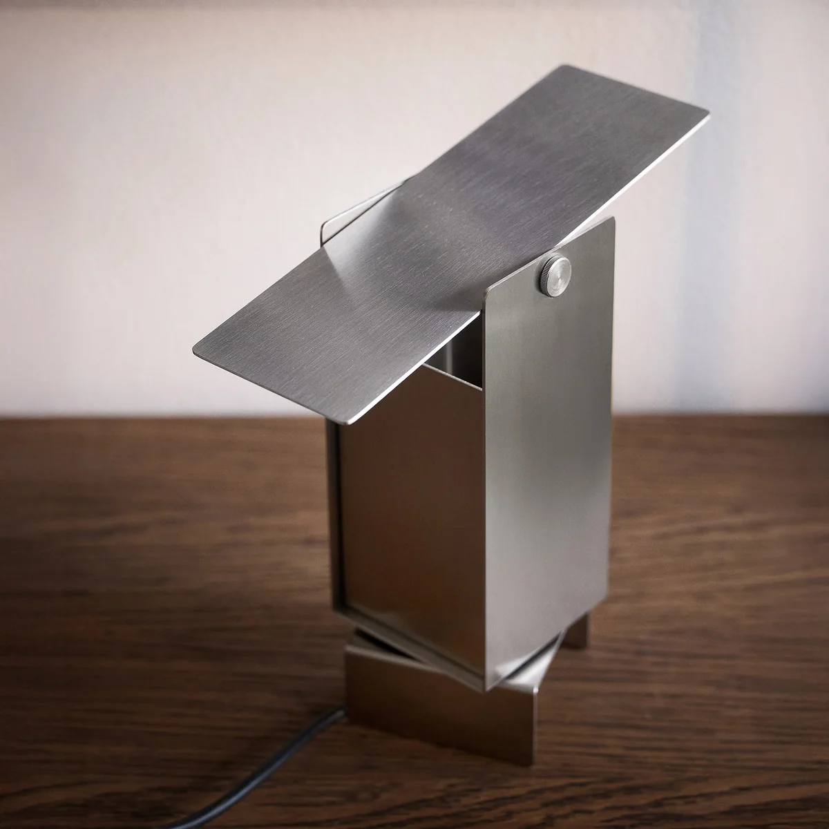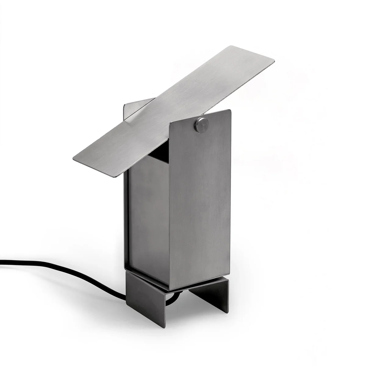 Die Pivoting Table Lamp von Moebe ist eine minimalistische Tischleuchte mit skulpturalem Ausdruck und funktionaler Vielseitigkeit. Gefertigt aus vier präzise geschnittenen Stahlblechen, die ineinander greifen, bietet sie nicht nur visuelle Präsenz, sondern auch flexible Lichtführung. Drei der Elemente bilden die stabile Basis, während das obere Segment als beweglicher Lichtlenker fungiert. Dadurch lässt sich die Lichtausrichtung individuell anpassen – je nach gewünschter Atmosphäre. Mit drei verfügbaren Farbvarianten fügt sich die Leuchte harmonisch in moderne Wohn- und Arbeitsumgebungen ein.