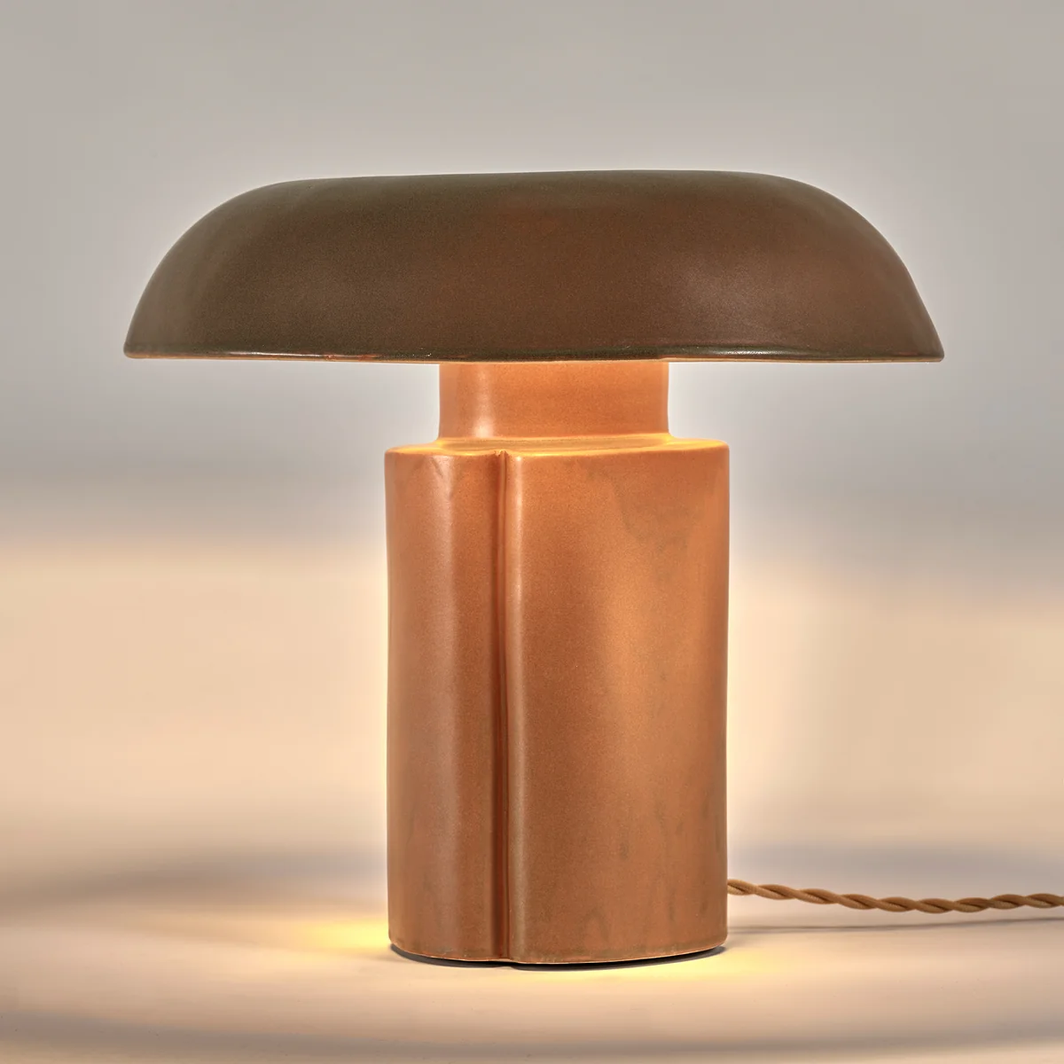 Die Oliver Tischleuchte von Serax vereint rustikalen Charme mit luxuriösen Details. Gefertigt aus robustem Steingut, besticht sie durch ihre warme, ockerfarbene Glasur und das tiefblaue Äussere, das mit der für Anita Le Grelle typischen reaktiven Glasur veredelt wurde.