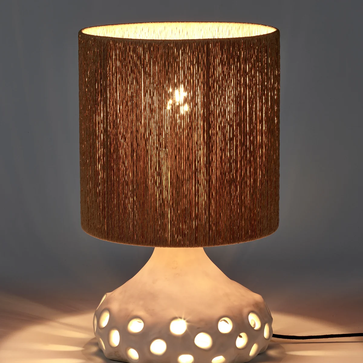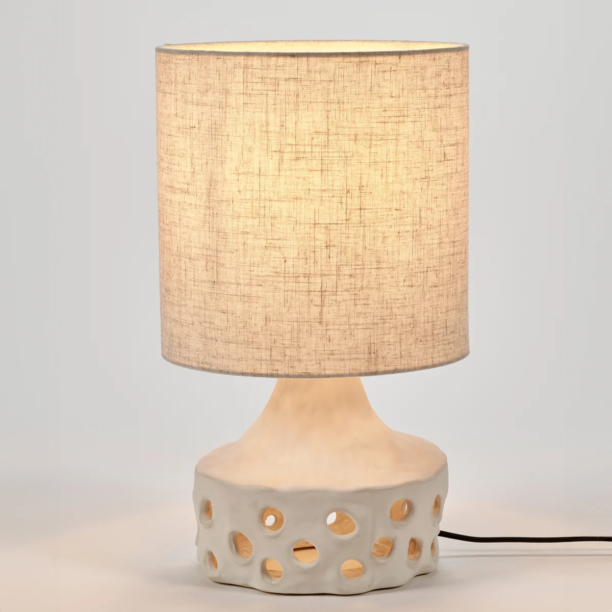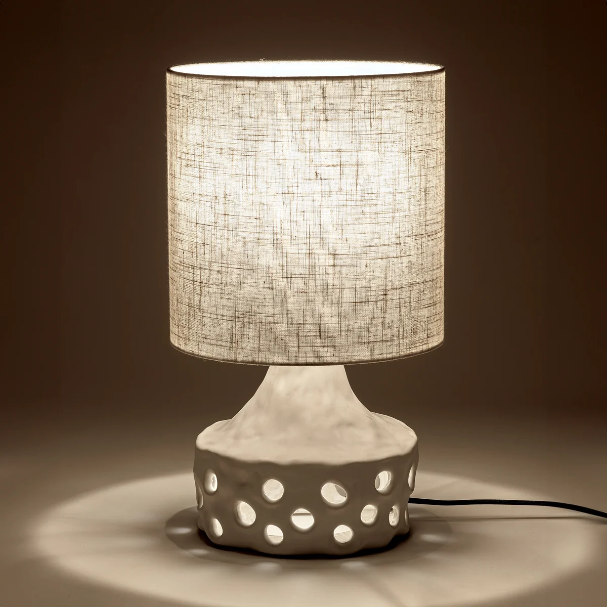 Die Oya Tischleuchte von Serax, entworfen von Sophie Casier, verbindet mediterrane Inspiration mit stilvollem Design. Der Fuss aus hochwertigem Steingut erinnert an die charakteristischen Formen eines charmanten Dorfes auf Santorin, während der runde Leinenschirm der Lampe eine elegante Note verleiht und für ein warmes, angenehmes Licht sorgt.