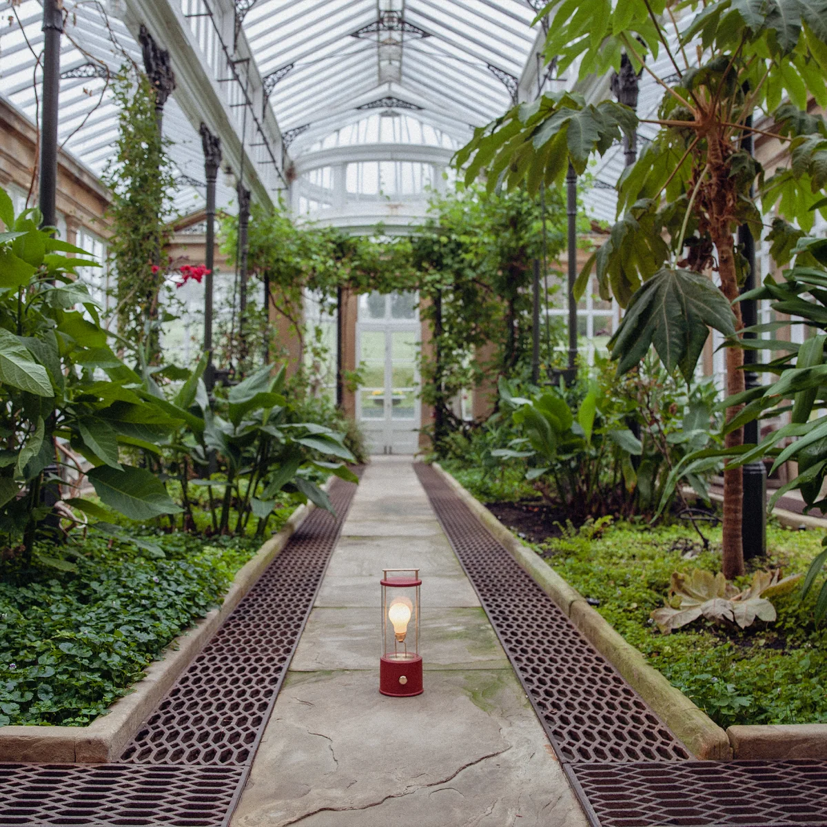 Die Muse verbindet die klassische Laternenästhetik mit hochmoderner Technologie und erinnert an die Verheissungen und Insignien des britischen Lustgartens des späten 18. Jahrhunderts, um eine zeitlose, tragbare Leuchte für zu Hause zu schaffen.