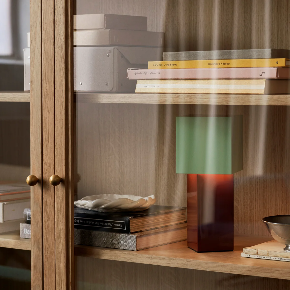 Die Pivot Portable ATD7 Akkuleuchte von &Tradition verbindet skulpturales Design und strahlendes Licht. Der geometrische Schirm der Leuchte ist in einem 45-Grad-Winkel zum Sockel positioniert. Der warme Schein des Lichts erinnert an atmosphärisches Kerzenlicht. Mit nur einem Knopfdruck kann ein wundervoll einladendes Ambiente geschaffen werden.
