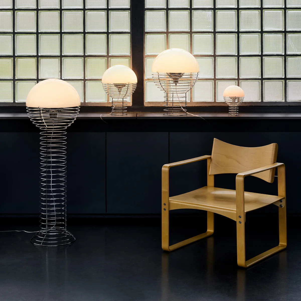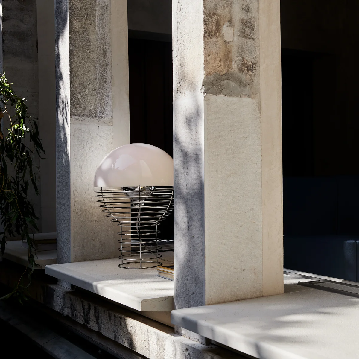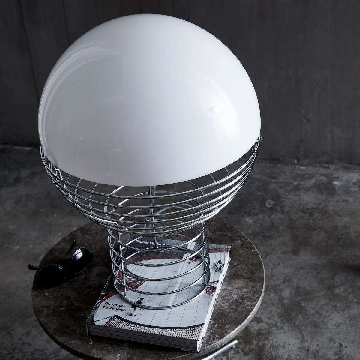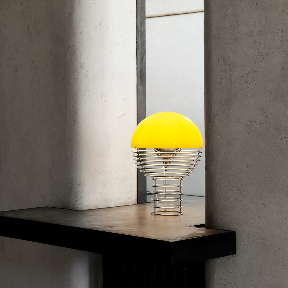 Die 1972 von Verner Panton entworfene Wire Tischleuchte ist Teil einer ursprünglich sehr umfassenden Serie von Tisch- und Stehleuchten. Heute produziert Verpan die Tischleuchten getreu den Entwürfen Pantons aus verchromtem Stahldraht und einem halbkugelförmigen Leuchtenschirm aus Kunststoff. Das Leuchtmittel (E14 für Ø 30 cm bzw. E 27 für Ø 40 cm) im Inneren der Konstruktion ist umgeben von einem Metallreflektor, der das Licht an die Innenseite des Schirms leitet und somit ein diffuses Licht erzeugt.