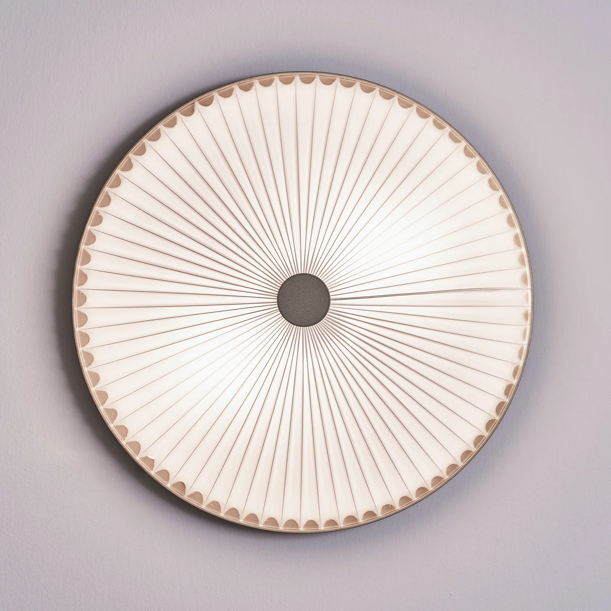 Die Lamella Wand- und Deckenleuchte von Le Klint ist eine Version der Lamella Pendelleuchte, die von dem Designerduo Jonah Takagi und Hallgeir Homstvedt entworfen wurde. Die beiden Designer waren fasziniert von der Unterseite von Pilzen und schufen davon inspiriert eine Leuchtenserie mit einer ähnlichen lamellenartigen Faltenstruktur. Als Wand- oder Deckenleuchte ist Lamella flexibel einsetzbar und spendet blendfreies Licht im Raum.