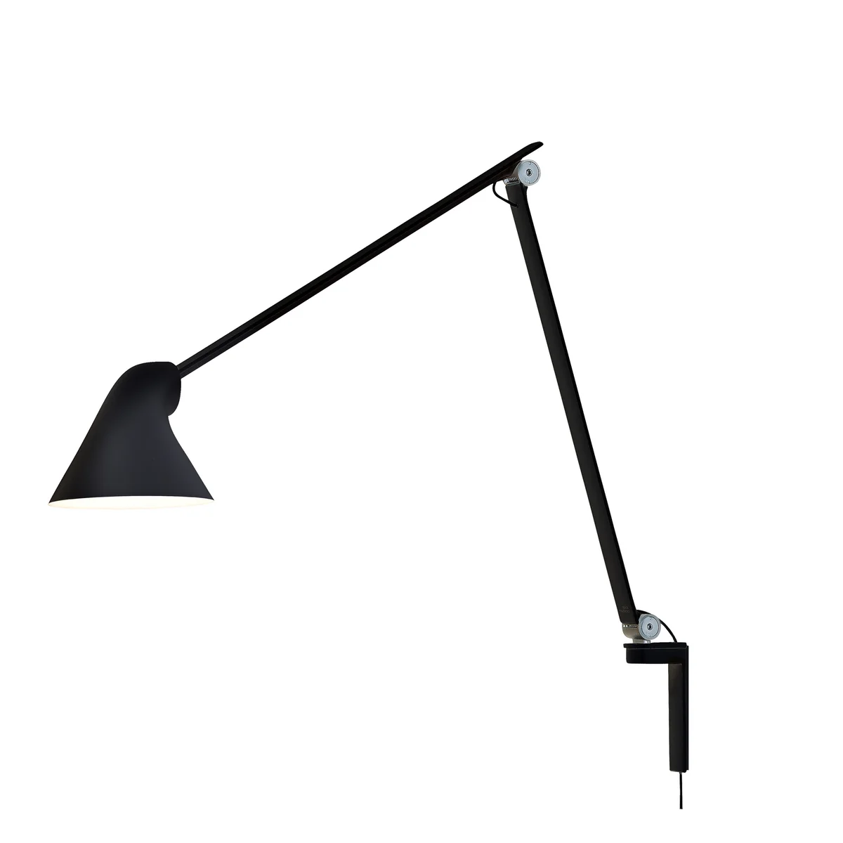 Mit einem flexiblen Gelenk lässt sich die Position der NJP Leuchte einfach ein- und verstellen. Dabei sind die Verbindungen nicht nur ein funktionales, sondern auch optisches Element der Nendo Leuchte, die das reduzierte Design der Architektenleuchte komplementiert. Ausserdem ist die Wandleuchte auch als NJP Wandleuchte kurz erhältlich.