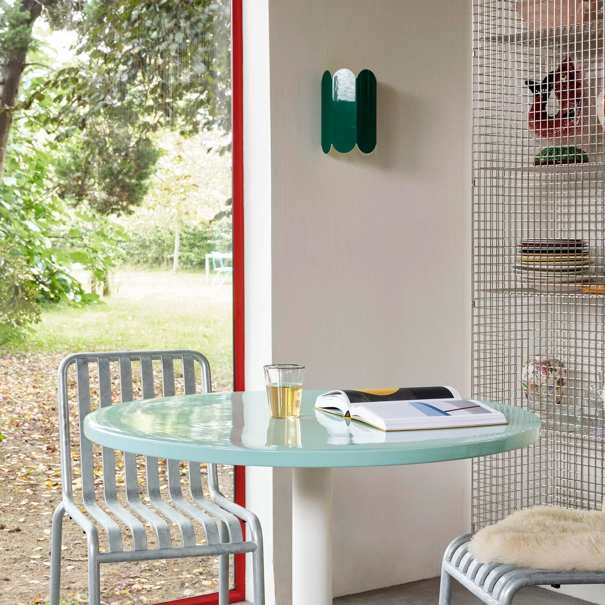 Die Arcs Wandleuchte von HAY ist mehr als nur eine Lichtquelle – sie ist ein kunstvolles Designobjekt, das Form und Funktion harmonisch vereint. Entworfen vom belgischen Designerduo Muller Van Severen, entsteht aus einer durchgängigen Kette sanft geschwungener Bögen eine markante, muschelartige Silhouette. Das indirekte Licht scheint atmosphärisch nach oben und unten und erzeugt dabei ein lebendiges Spiel aus Licht und Schatten.
