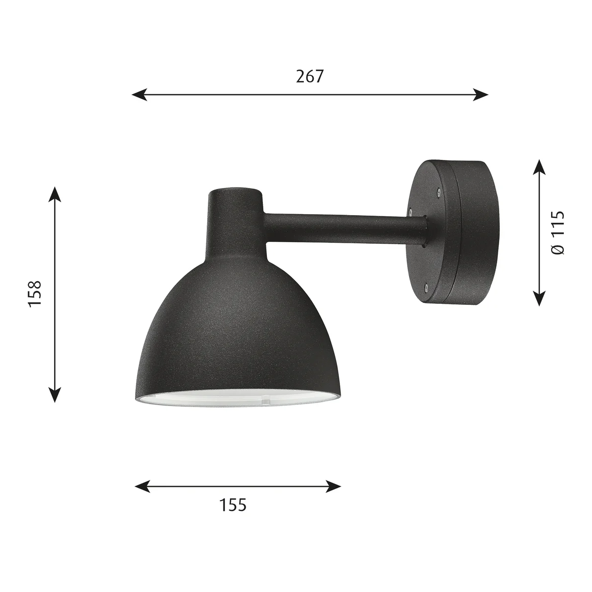 Das dezente, klassische Design der Toldbod 155 wurde von Poul Henningsen entworfen und war ursprünglich der Entwurf für eine Strassenlaterne in Kopenhagen. Die Toldbod 155 Wandleuchte passt sich dank dieser gestalterischen Klarheit an unterschiedliche Wohnbereiche an, wobei die Leuchte problemlos auch im geschützten Aussenbereich angebracht werden kann.