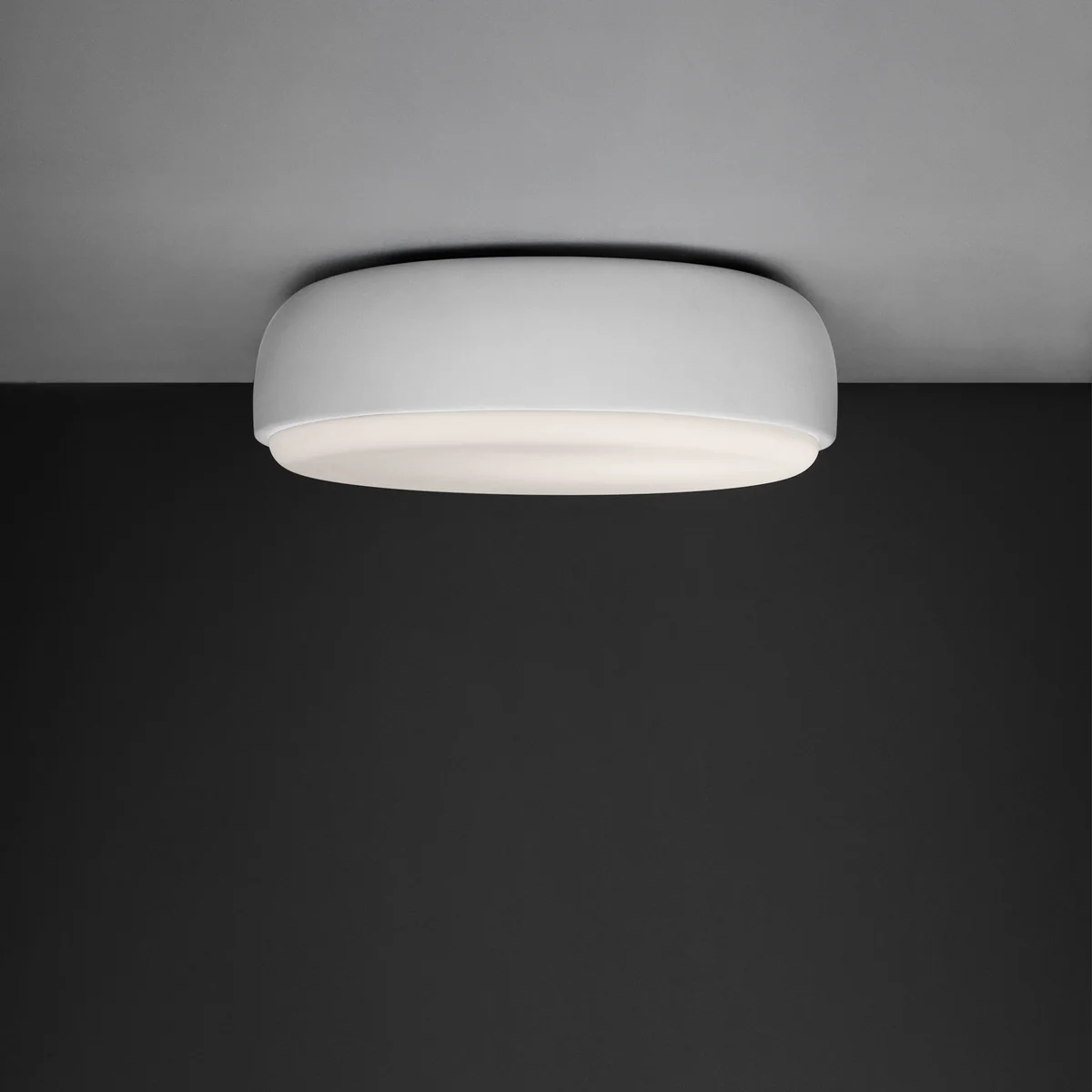 Die Leuchte, die sich sowohl an der Decke als auch an der Wand befestigen lässt, besteht aus einem runden Metallschirm und einer leuchtenden Glasscheibe, wodurch sie von allen Seiten diffuses und angenehmes Licht spendet. Dank der minimalistischen Erscheinung fügt sie sich optimal in moderne Innenräume ein. Over Me ist in verschiedenen Grössen sowie Farben erhältlich und kann flexibel, je nach Raumsituation, an Decke oder Wand befestigt werden - ob im Badezimmer, in der Küche oder in Reihe im Flur arrangiert.