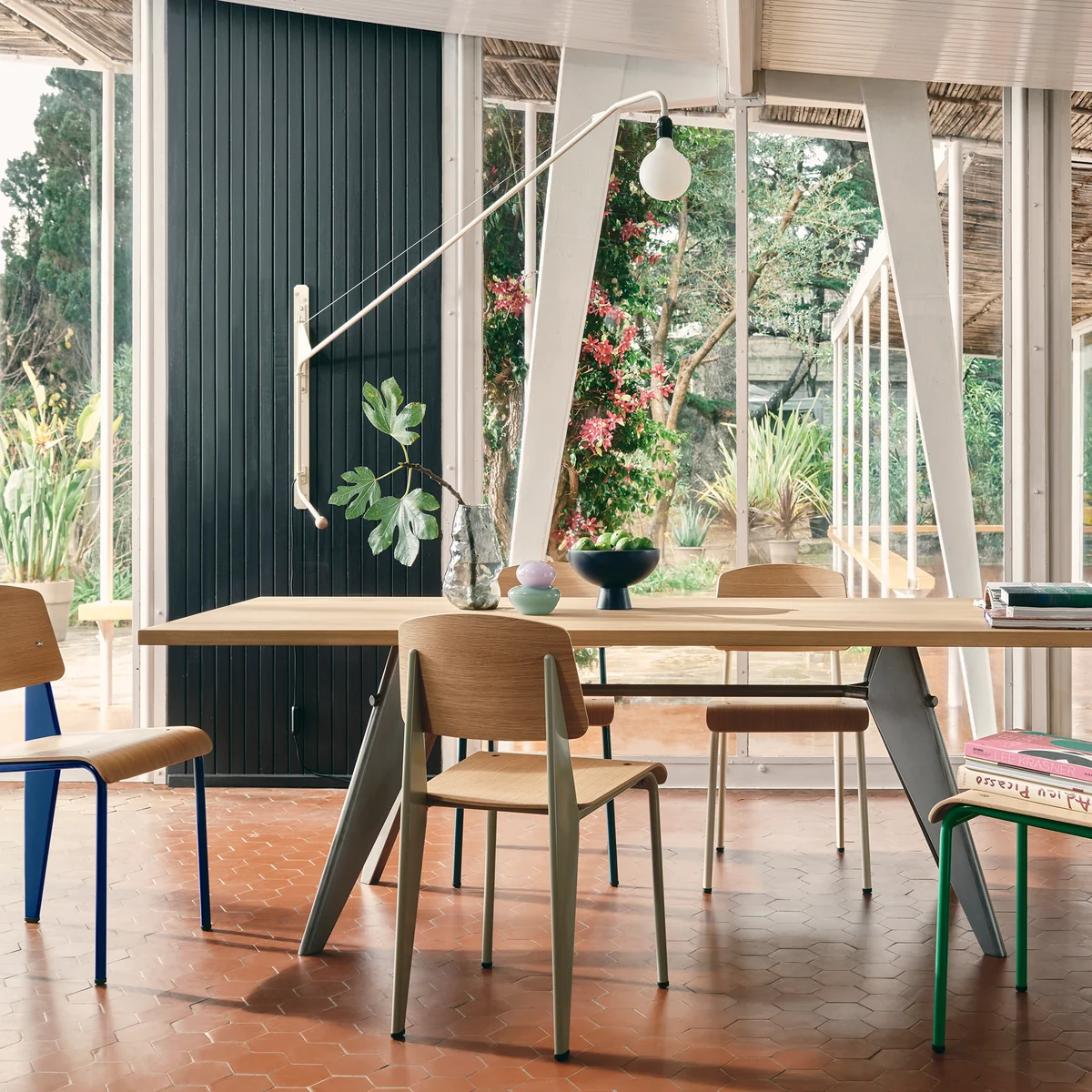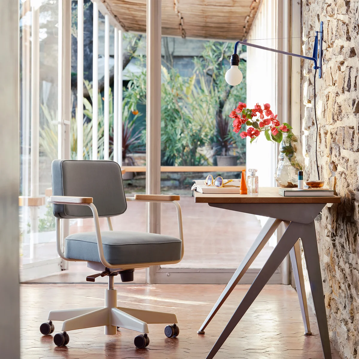 Die für das Haus "Tropique" entworfene, schwenkbare Wandleuchte Potence für Vitra gilt als puristisches Meisterstück von Jean Prouvé. Insbesondere der sparsame Einsatz der materiellen und gestalterischen Mittel macht die Faszination der Leuchte aus.