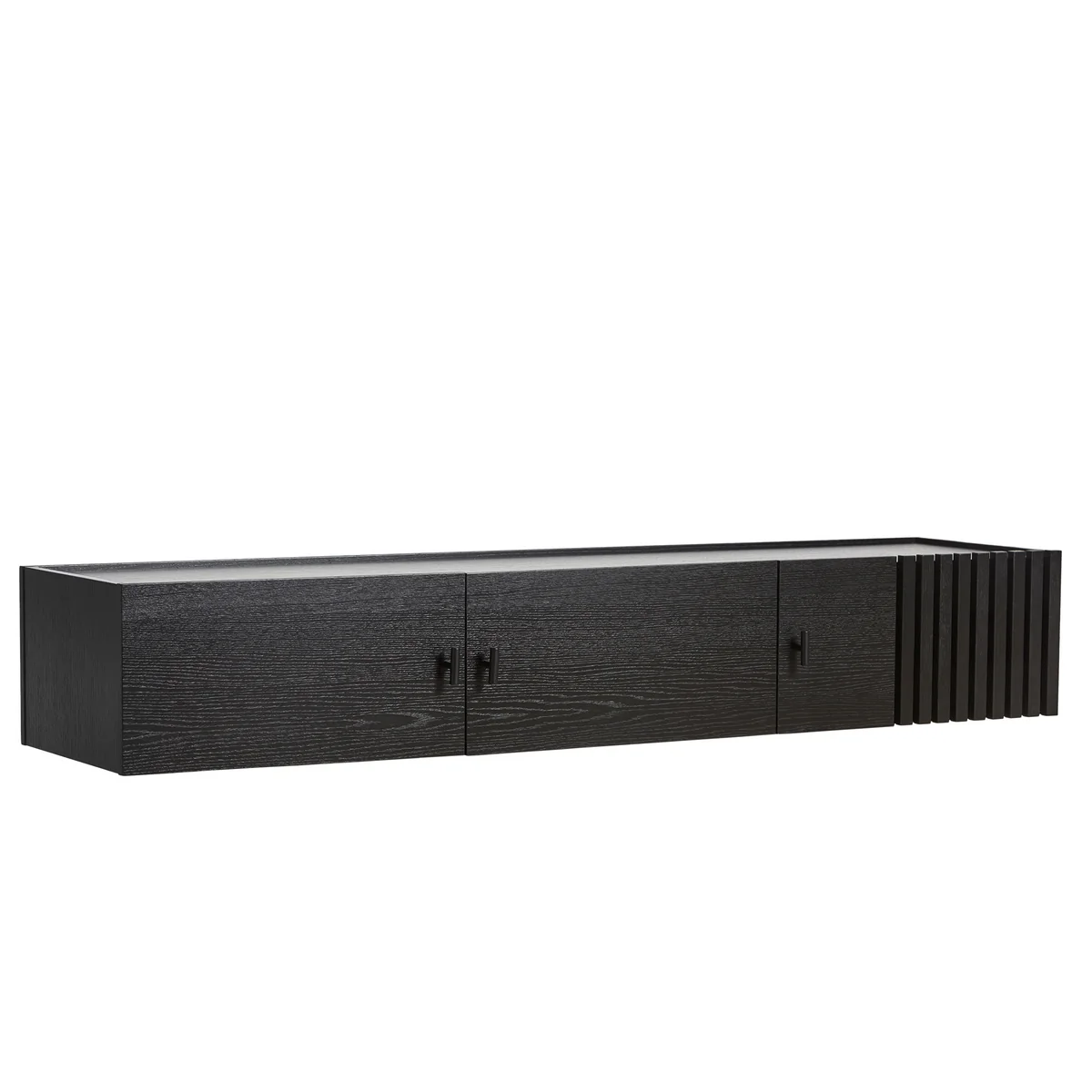 Die Sideboard-Serie Array von Woud ist inspiriert von der Holzschieferverkleidung moderner Gebäude. Entworfen wurden die Sideboards von Says Who. Die geometrische Form und die Vertiefungen im Holz sorgen für einen starken visuellen Effekt. Die schlanken Beine heben das Sideboard vom Boden ab und bilden einen eleganten Kontrast zum kantigen Gehäuse des Sideboards. Die Illusion von Transparenz weckt die Neugierde im Betrachter, was sich wohl hinter den geschlossenen Türen verbirgt.