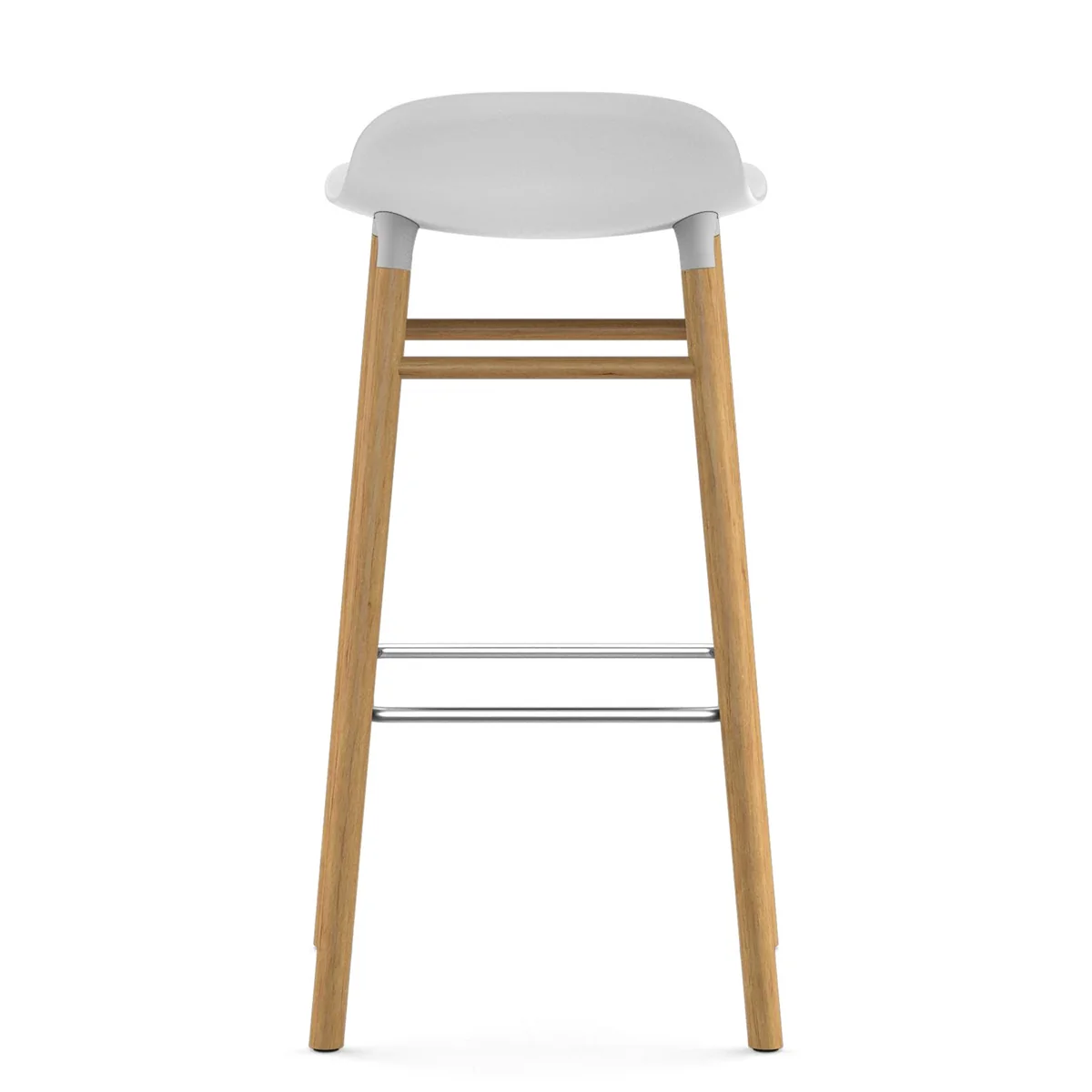 Als Teil der Form Serie von Designer Simon Legald für Normann Copenhagen begeistert der Form Barstuhl, ebenso wie die anderen Stühle, mit einer einzigartigen Verbindung zwischen Sitzschale und Untergestell: Durch die Steckverbindung macht es den Anschein, als würden die Stuhlbeine aus der Sitzschale „wachsen“. Ein moderner und zeitloser Barstuhl in skandinavischem Design.