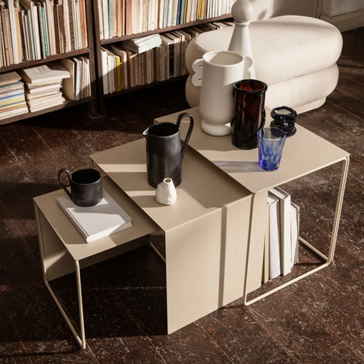 Die Cluster Tables von Ferm Living aus pulverbeschichtetem Stahl überzeugen mit ihrem zeitlosen, minimalistischen Design und besonderen Flexibilität. Das Set besteht aus drei unterschiedlich grossen Tischen, die sich nach Belieben anordnen lassen.