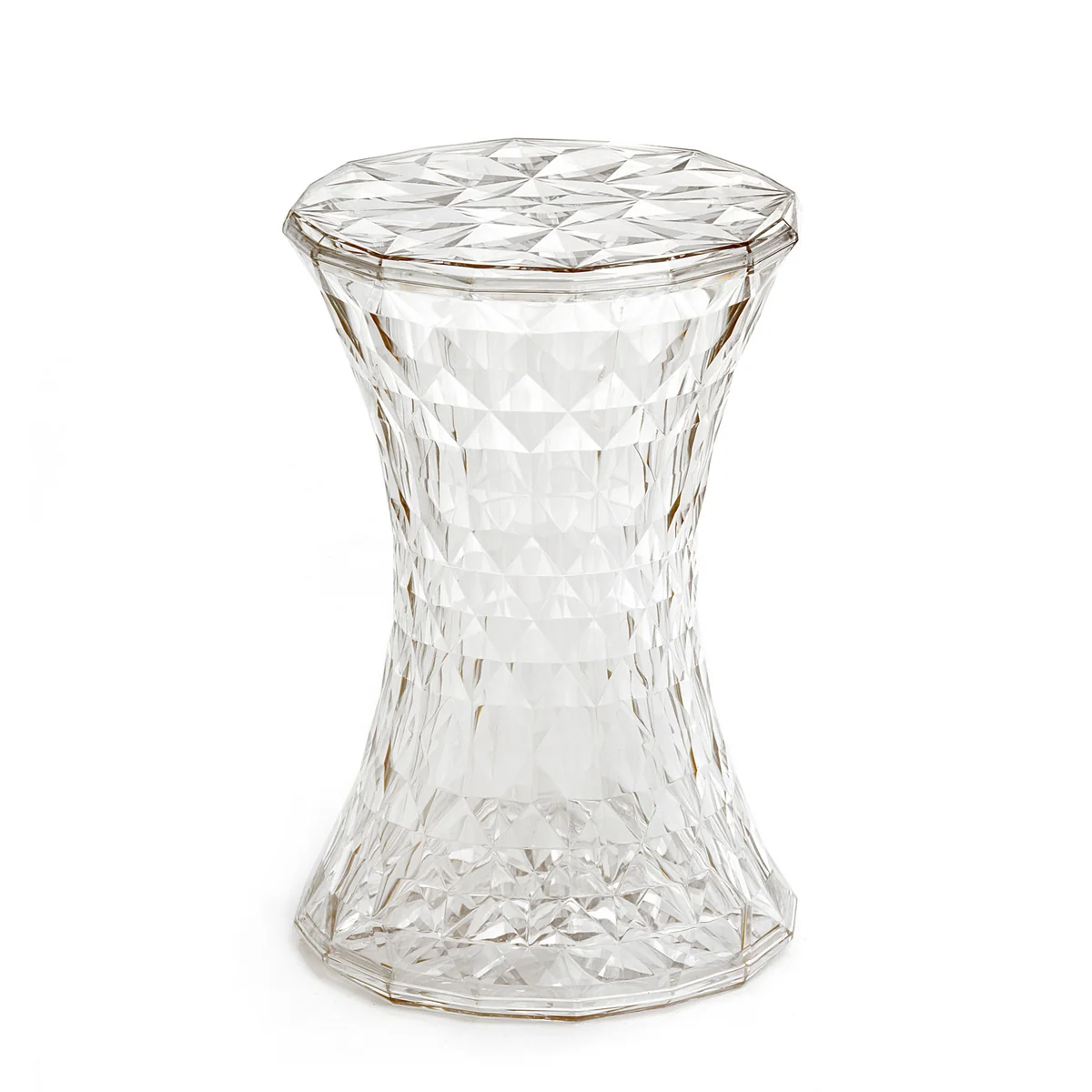Ein niedriger Hocker, der aus einem einzigen Guss hergestellt ist und sich durch eine sachlich lineare und symmetrische Form auszeichnet, die an eine Sanduhr erinnert. Eine Sanduhr jedoch mit einer ganz besonderen Oberfläche: von unregelmässiger Gestalt, bestehend aus vielen geometrischen, spiegelnden Facetten, mit spezieller Lichtwirkung, aus der sich ein ganz besonderes Farbspiel ergibt, das an einen Diamanten erinnert. Eben gerade durch diese preziöse Eigenschaft wird der Hocker Stone von Kartell in unterschiedlichen Farben der Edelsteine angeboten.