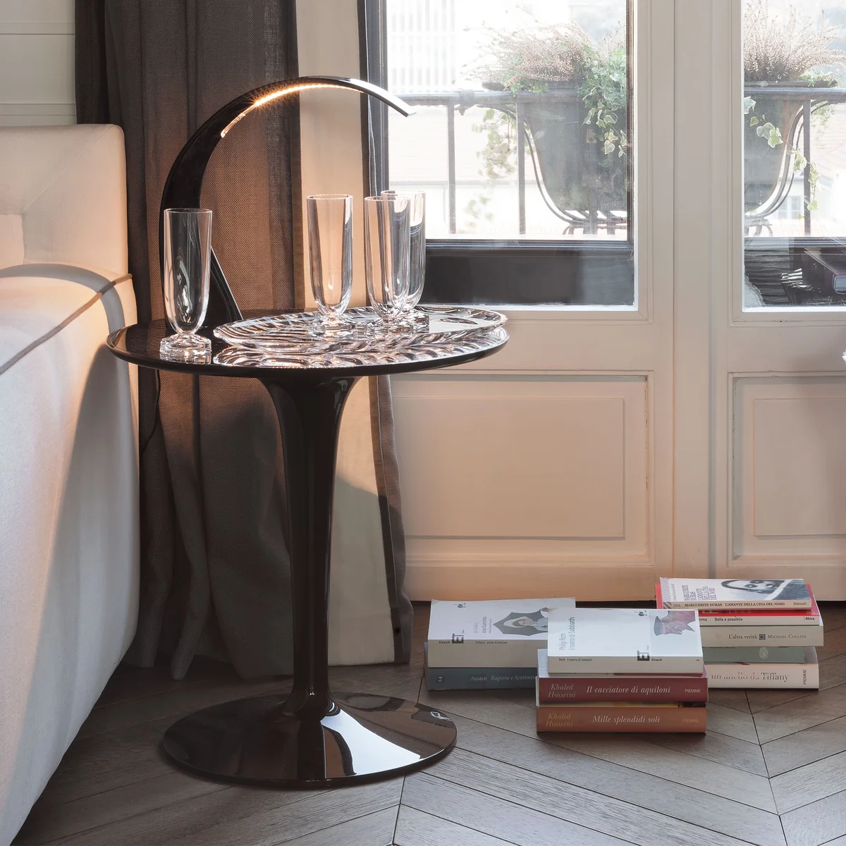 TipTop ist ein kleiner Beistelltisch, flexibel, leicht, anpassungsfähig und elegant. Kein Wunder, denn gestaltet wurde der kleine Tisch von niemand anderem als Stardesigner Philippe Starck.