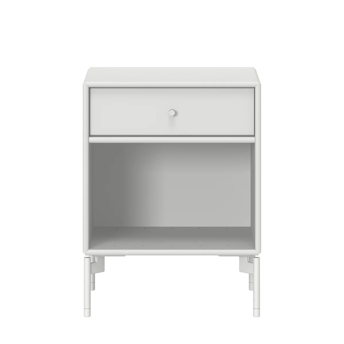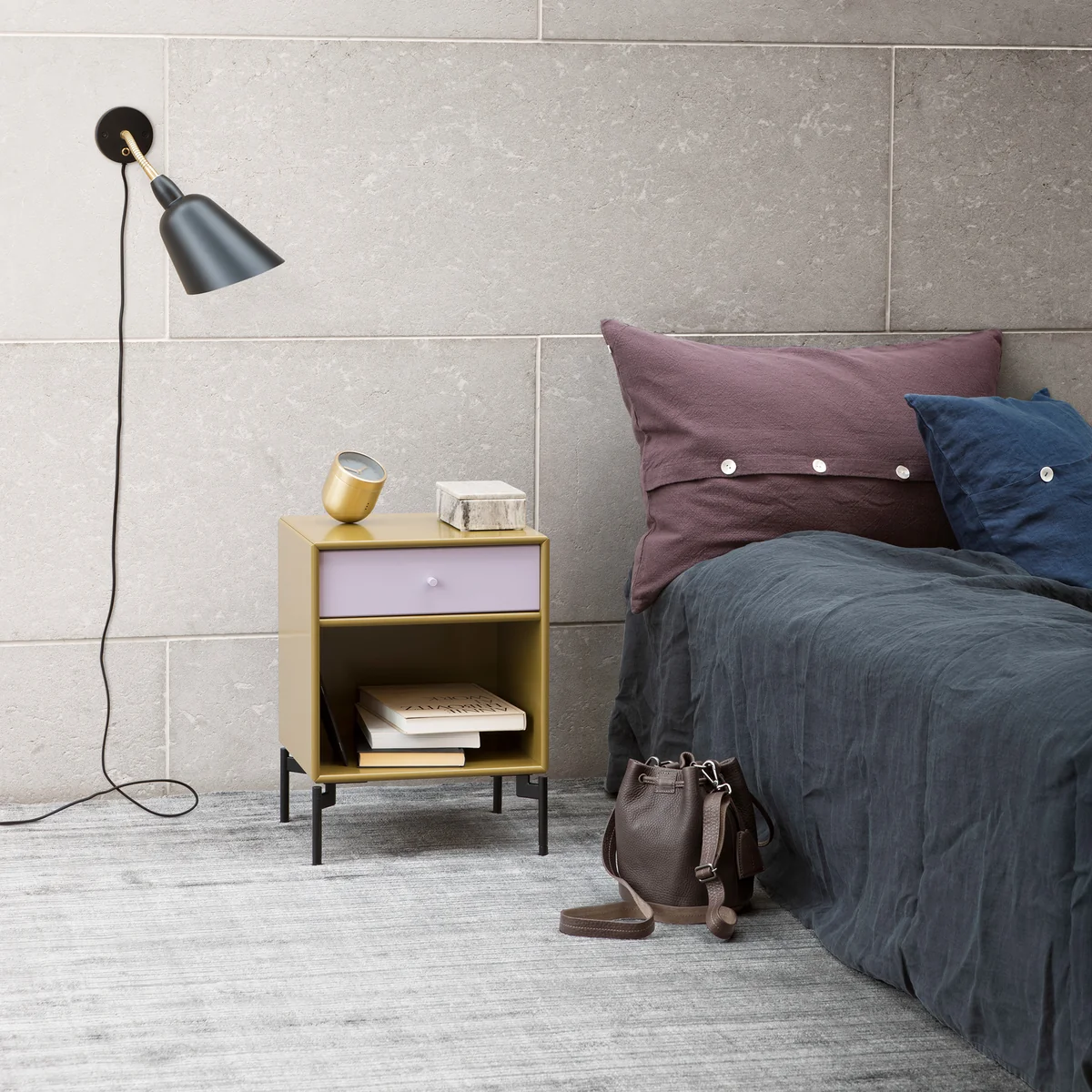 Der Nachttisch wird aus 12 mm MDF-Platte hergestellt und ist in allen Montana Farben erhältlich. Wahlweise gibt es das Tischchen mit vier Beinen oder einem Sockel. Dank eines Aufhängebeschlags kann Dream auch an die Wand gebracht werden und vier Rollen machen den Nachttisch besonders flexibel.