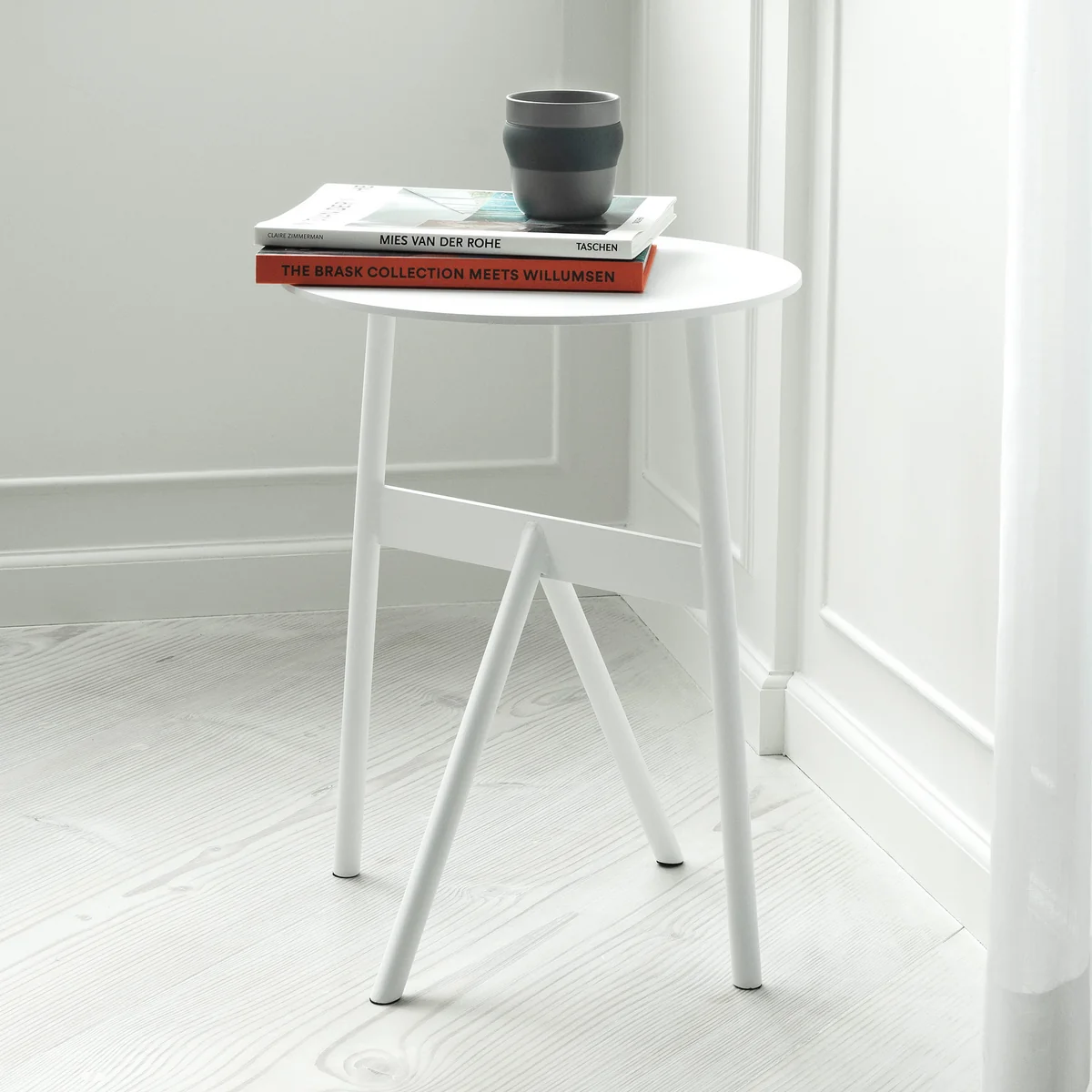 Der Stock Tisch von Normann Copenhagen ist ein kleiner Beistelltisch, der von MSDS Studio entworfen wurde. Das Designstudio orientierte sich für den Entwurf an elementaren Stahlteilen, woraus ein Tisch entstanden ist, der auf schnörkellose Weise aus Metall hergestellt wird und trotzdem filigran und dekorativ wirkt.