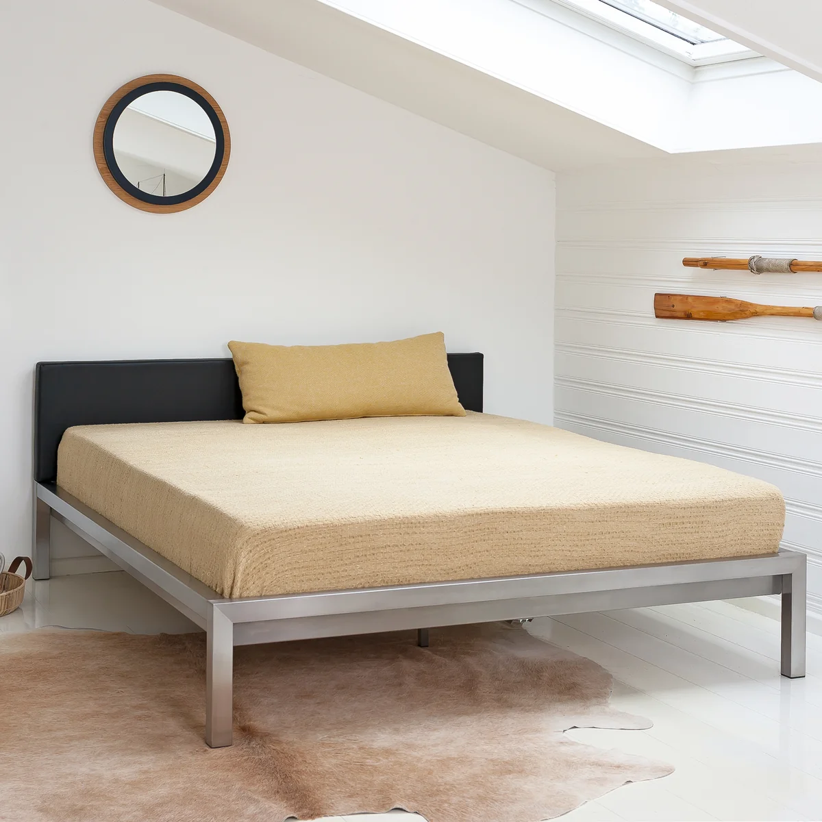 Schlichtes und puristisches Bett