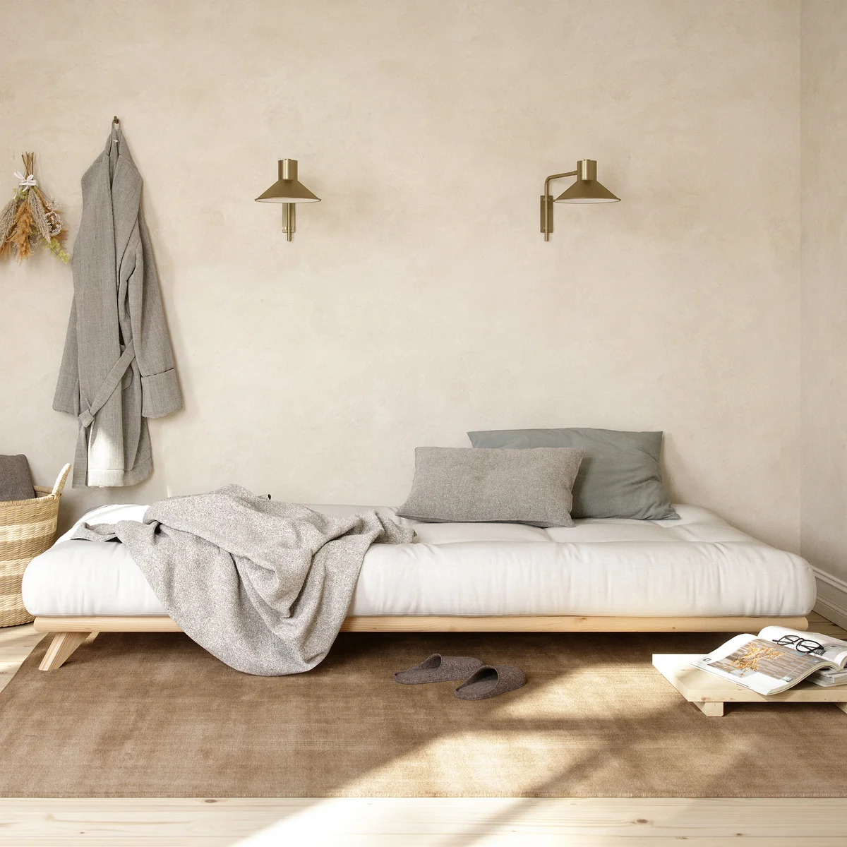 Das Senza Bett von Karup Design ist ein minimalistisches und zeitloses Bettgestell aus Kiefernholz in verschiedenen Farben. Inspiriert vom japanischen Stil wurde das Bett so entworfen, dass es jeden Komfort und jede Unterstützung bietet, die man braucht, ohne unnütze Details oder Verschnörkelungen. Die einfachen und eleganten Linien schaffen eine friedvolle Atmosphäre, und das Bett harmoniert mit vielen verschiedenen Stilen und Einrichtungen. So sorgt das Bettgestell für eine erholsame Nacht.