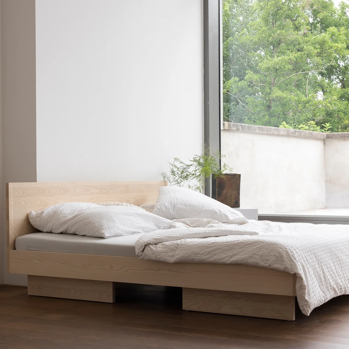 Schlichtes Bett aus Eichen- oder Eschenholz