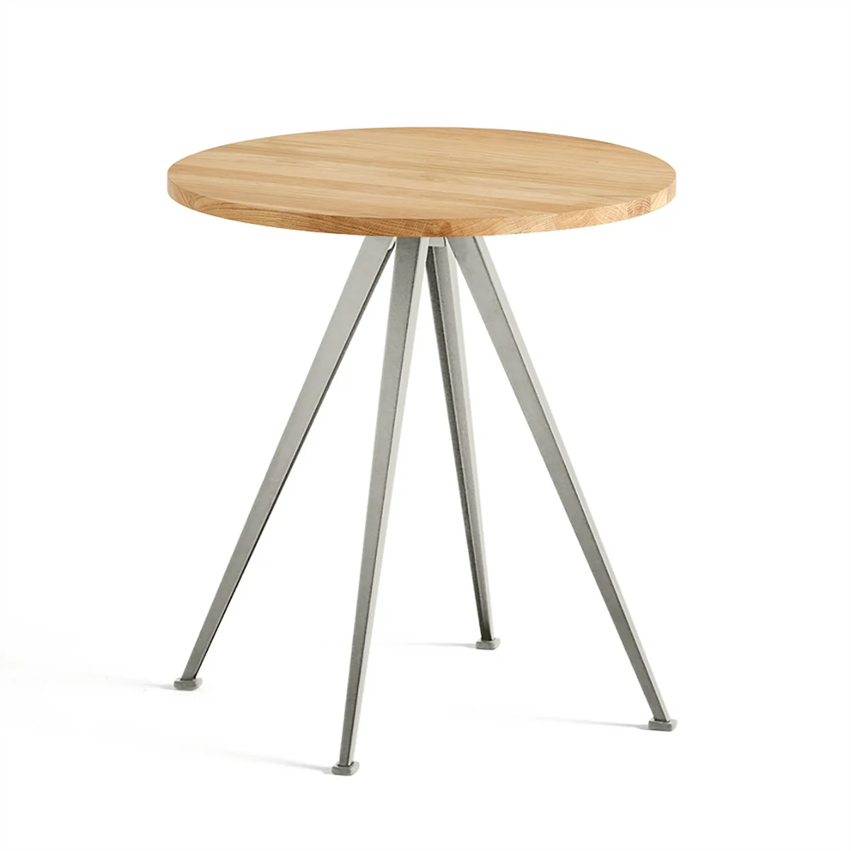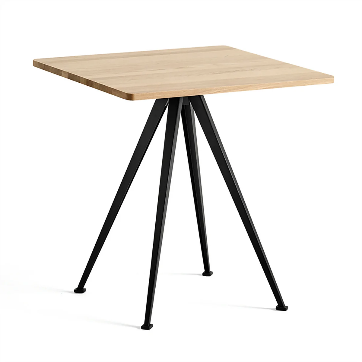Teil der Serie ist auch der Pyramid Bistrotisch 21, der durch sein vierbeiniges, pyramidenartig zulaufendes Untergestell überzeugt. Aus pulverbeschichtetem Stahl gefertigt, erhält der Tisch eine industrielle Note, die für einen tollen Blickfang sorgt. Warme, weiche Akzente setzt hingegen die Tischplatte aus Eichenholz, dessen Maserung deutlich sichtbar ist.