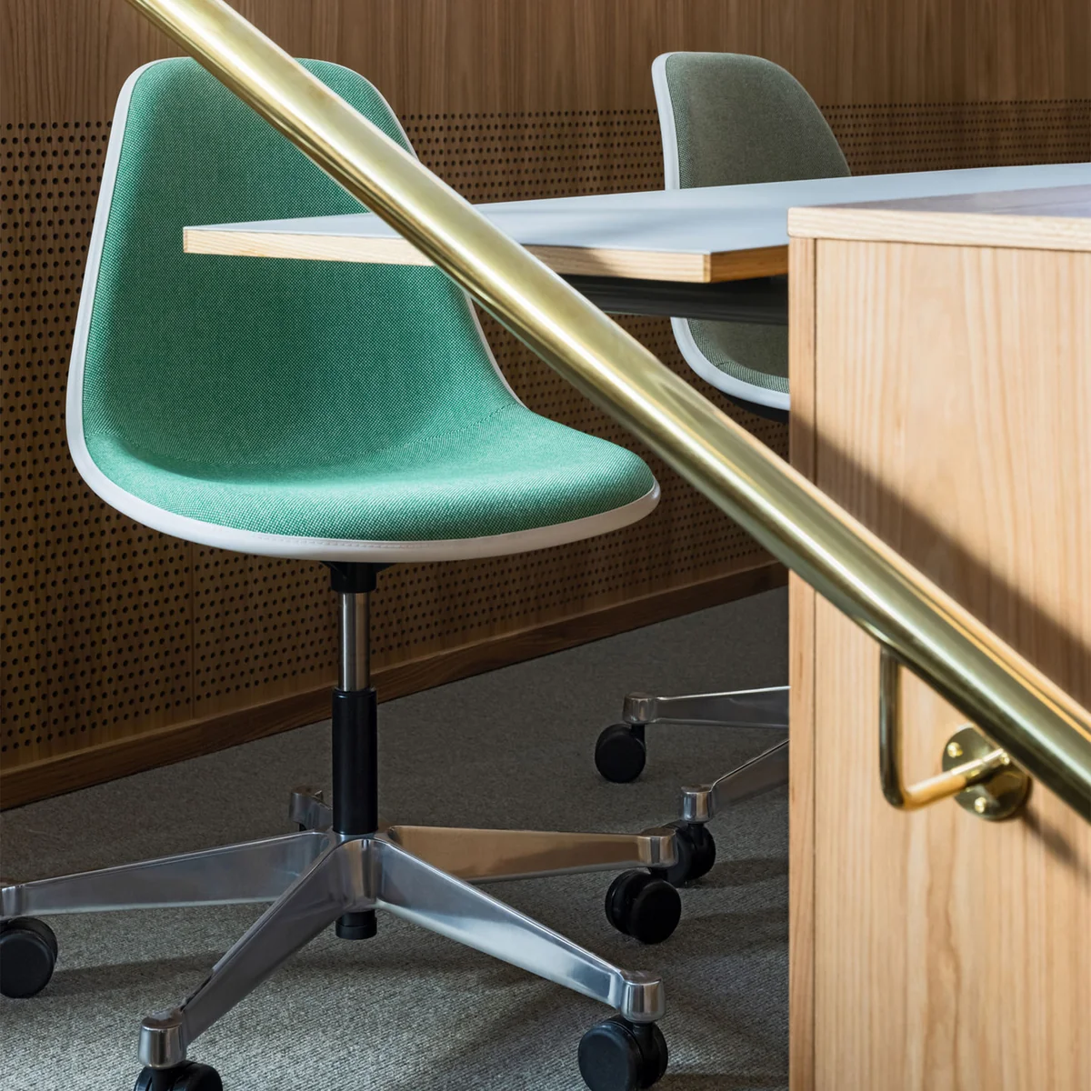 PSCC macht aus dem Plastic Side Chair von Charles & Ray Eames einen Bürodrehstuhl.