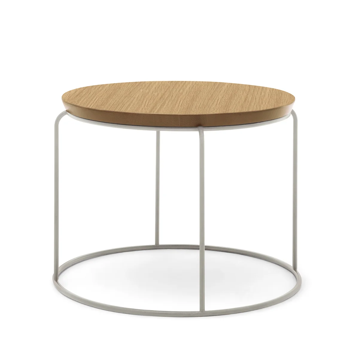 Die Tischplatte ist auch Eichenholz in verschiedenen Ausführungen erhältlich und das gebogene, verschweisste Stahlgestell ist pulverbeschichtet und in verschiedenen RAL-Farben verfügbar. Dabei stehen verschiedenen Höhe sowie eine rechteckige und Tischplatte für den 151 Couchtisch zur Auswahl.