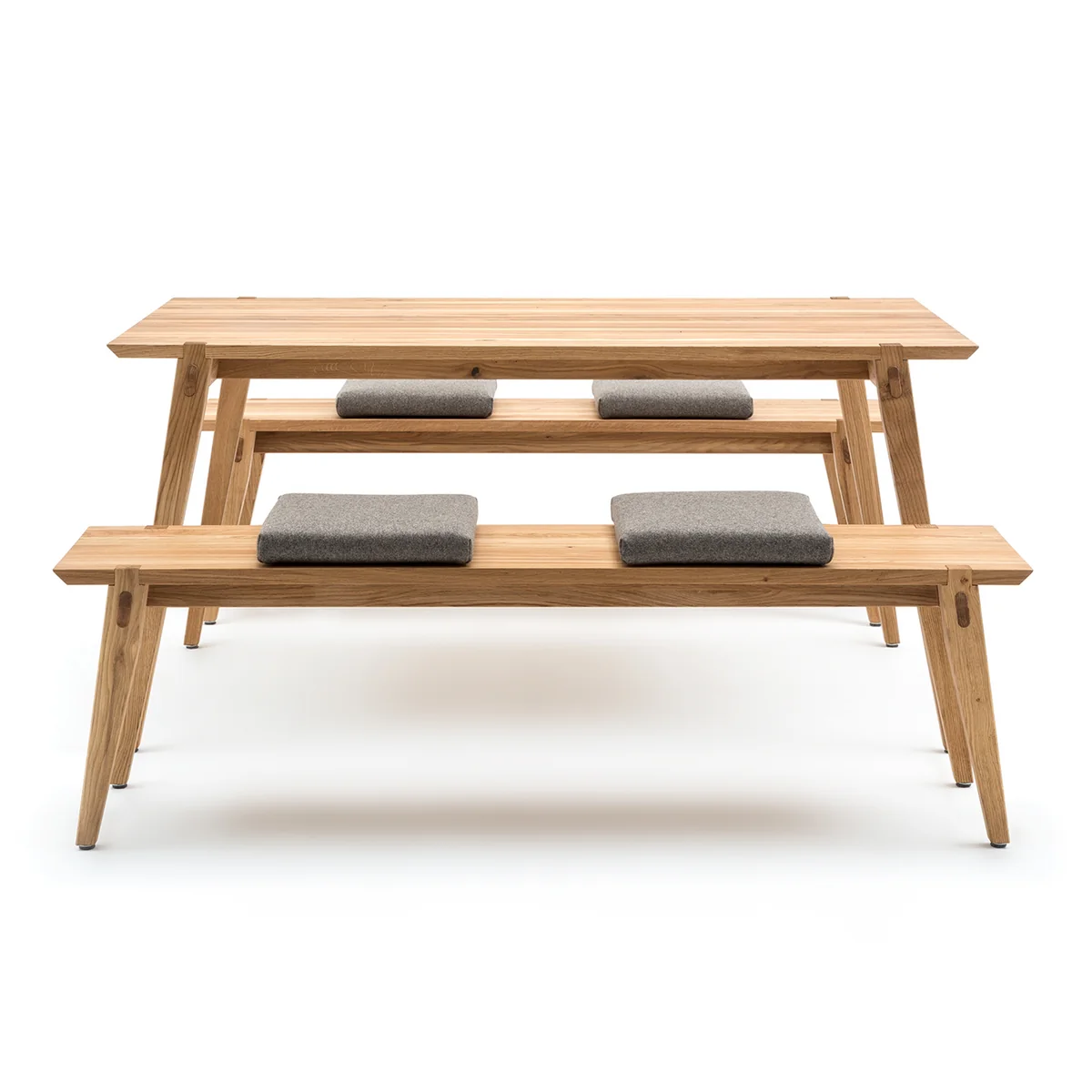 Zu der 156 Serie gehören neben dem Esstisch in verschiedenen Grössen auch die passende 156 Bank, die mit passenden Polster ergänzt werden kann.