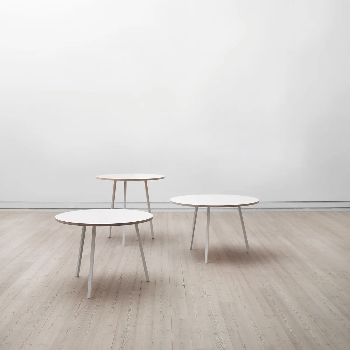 Der runde Loop Stand Tisch kommt überaus geradlinig und typisch skandinavisch daher. Er gehört zu der Basismöbel-Serie Loop, die der dänische Designer Leif Jørgensen für HAY gestaltet hat.