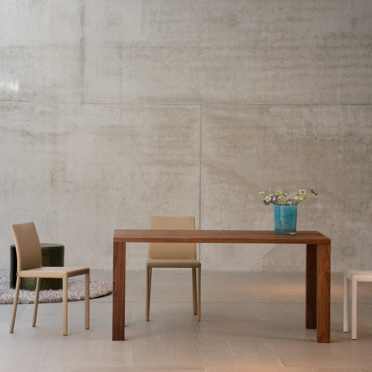 Der Leos Esstisch von Jan Kurtz überzeugt mit seinem gradlinigen, robusten Design, das sich problemlos in jedes klassische sowie moderne Ambiente einfügt. Während die 3,6 cm dicke Tischplatte aus Echtholzfurnier gefertigt ist, bestehen die stämmigen Beine aus Massivholz. Die deutlich sichtbare Maserung sorgt für eine natürliche Erscheinung, die warme, einladende Akzente im Esszimmer oder Wohnbereich setzt.