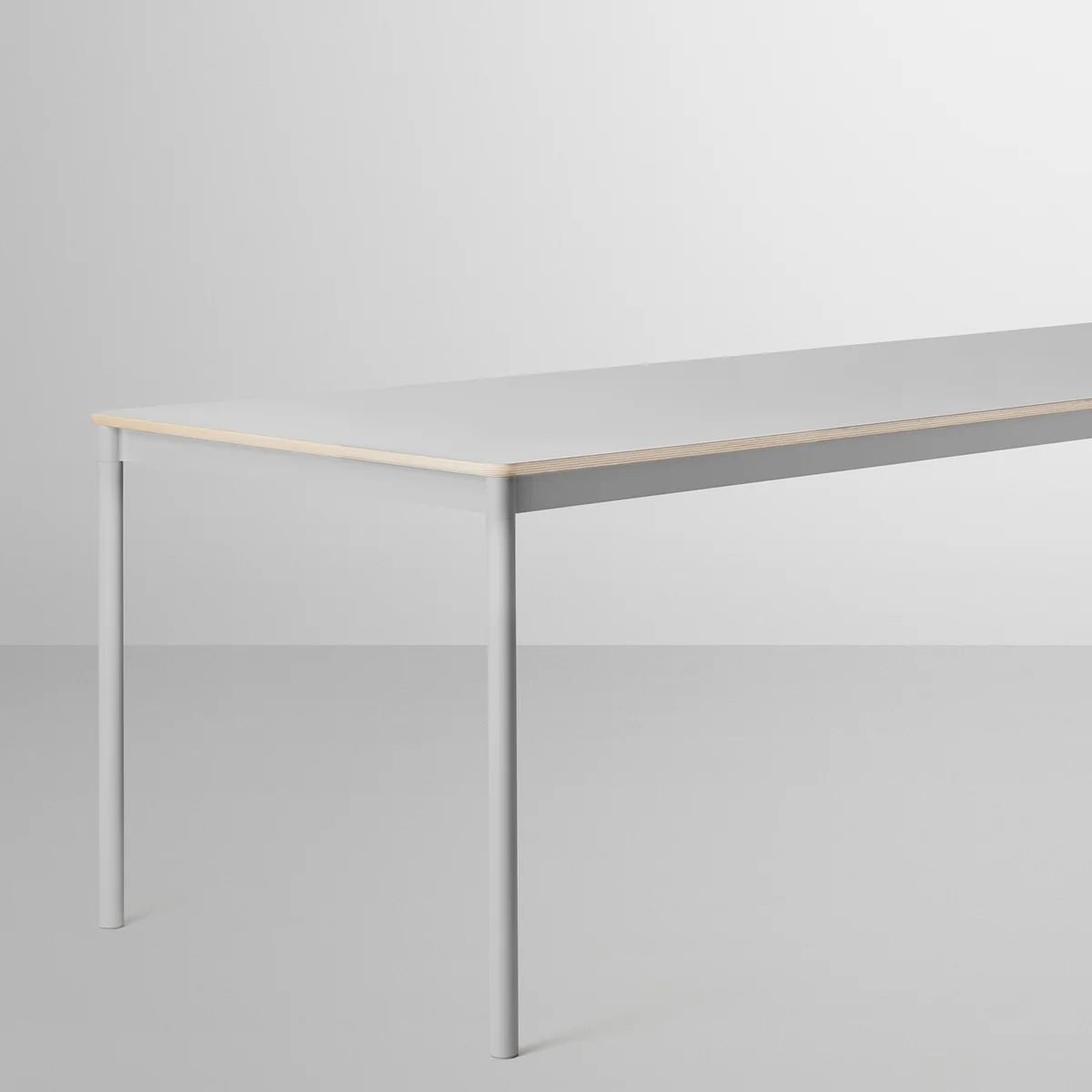 Die schlanke Form des Base Table wird durch die ausgeklügelte Aluminiumstruktur ermöglicht, die sich unter dem Tisch verbirgt. Bei der Herstellung des Base Table wurde besonderer Wert auf Details und Qualität gelegt, ebenso auf die Haltbarkeit bei ständigem starken Einsatz. Die täuschende Einfachheit, die Leichtigkeit, die Vielseitigkeit und die hochwertige Konstruktion machen aus dem charakterstarken Tisch eine zeitlose Ergänzung in fast jeder Einrichtung.