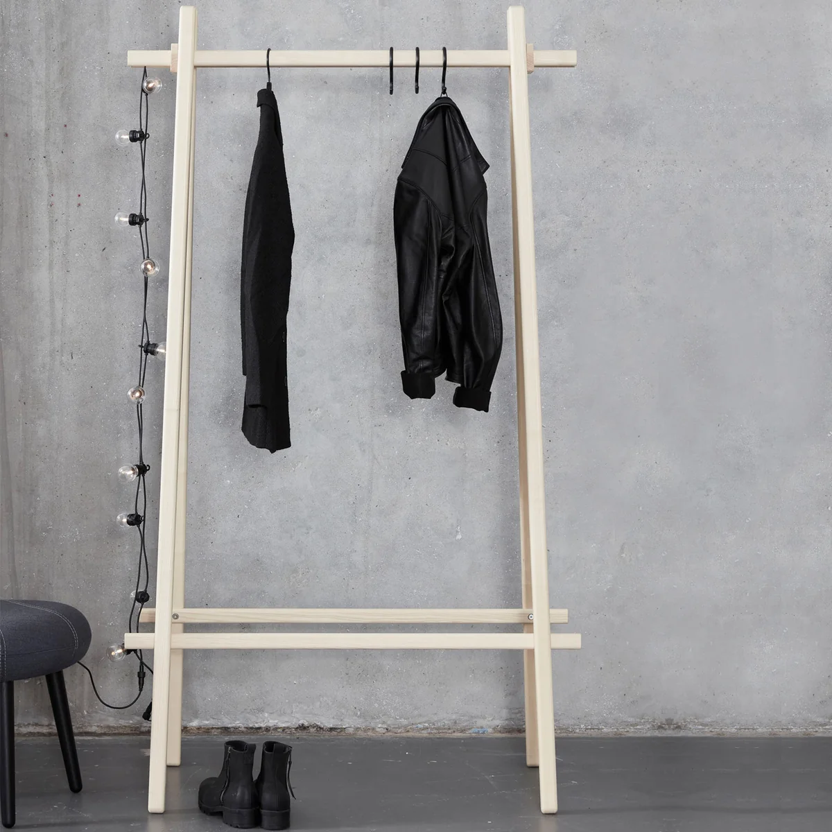Der Kleiderständer von Andersen Furniture ist eine platzsparende Garderobe, die sowohl an der Wand befestigt werden kann, sowie in doppelter Ausführung inkl. Verbindungsstück zu einer stehende Garderobe umfunktioniert werden kann.