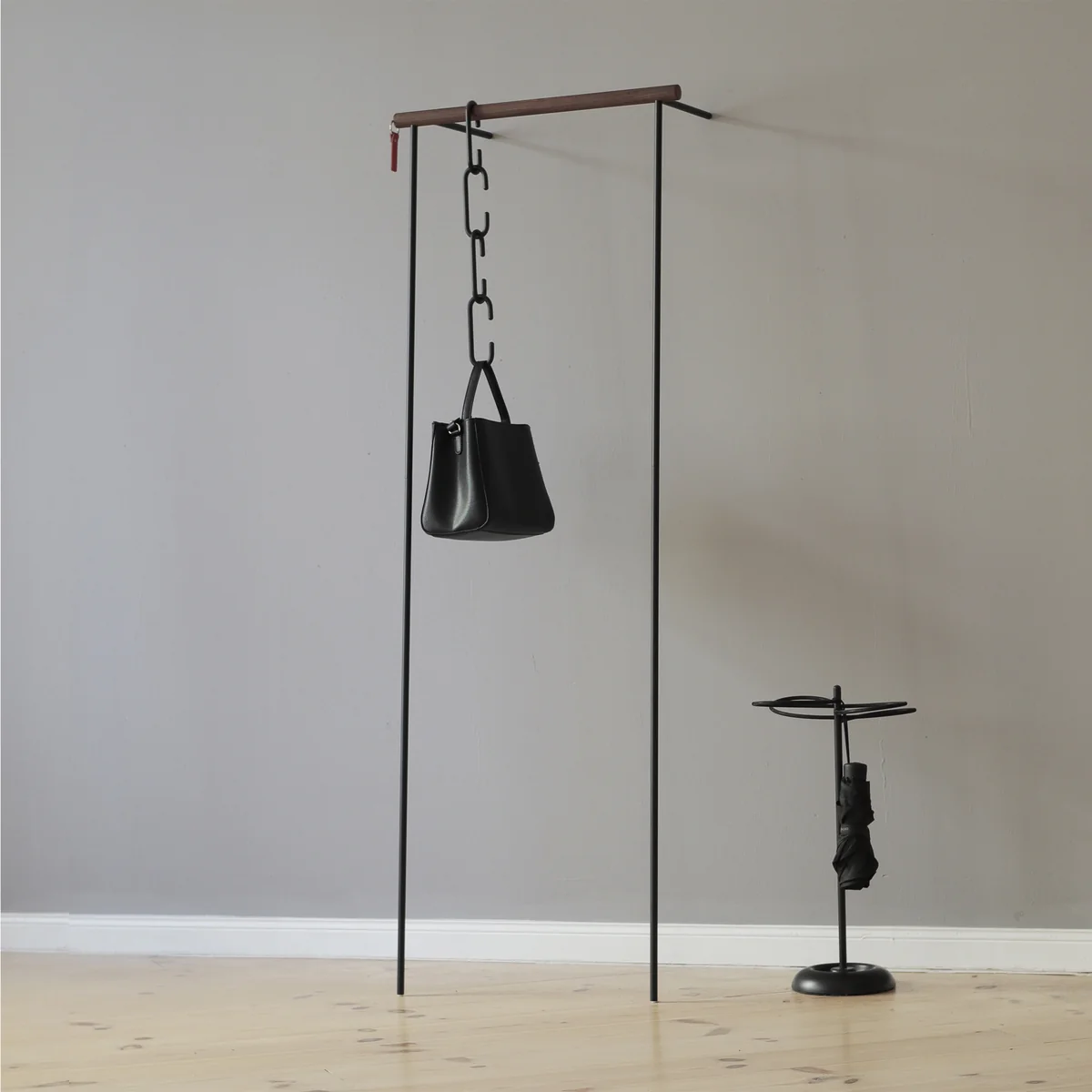 Dies ist auch eine Folge des minimalistischen Designs der Garderobe, das auf jegliche überflüssige Details verzichtet und die pure Funktionalität in den Mittelpunkt stellt. Das Design hat zur Folge, dass Leanon durch schlichte Eleganz überzeugt. Die Garderobe besteht aus wenig mehr als einem Gestell aus Aluminium, welches eine Holzstange trägt, an der Kleidung und Kleiderbügel aufgehängt werden können.