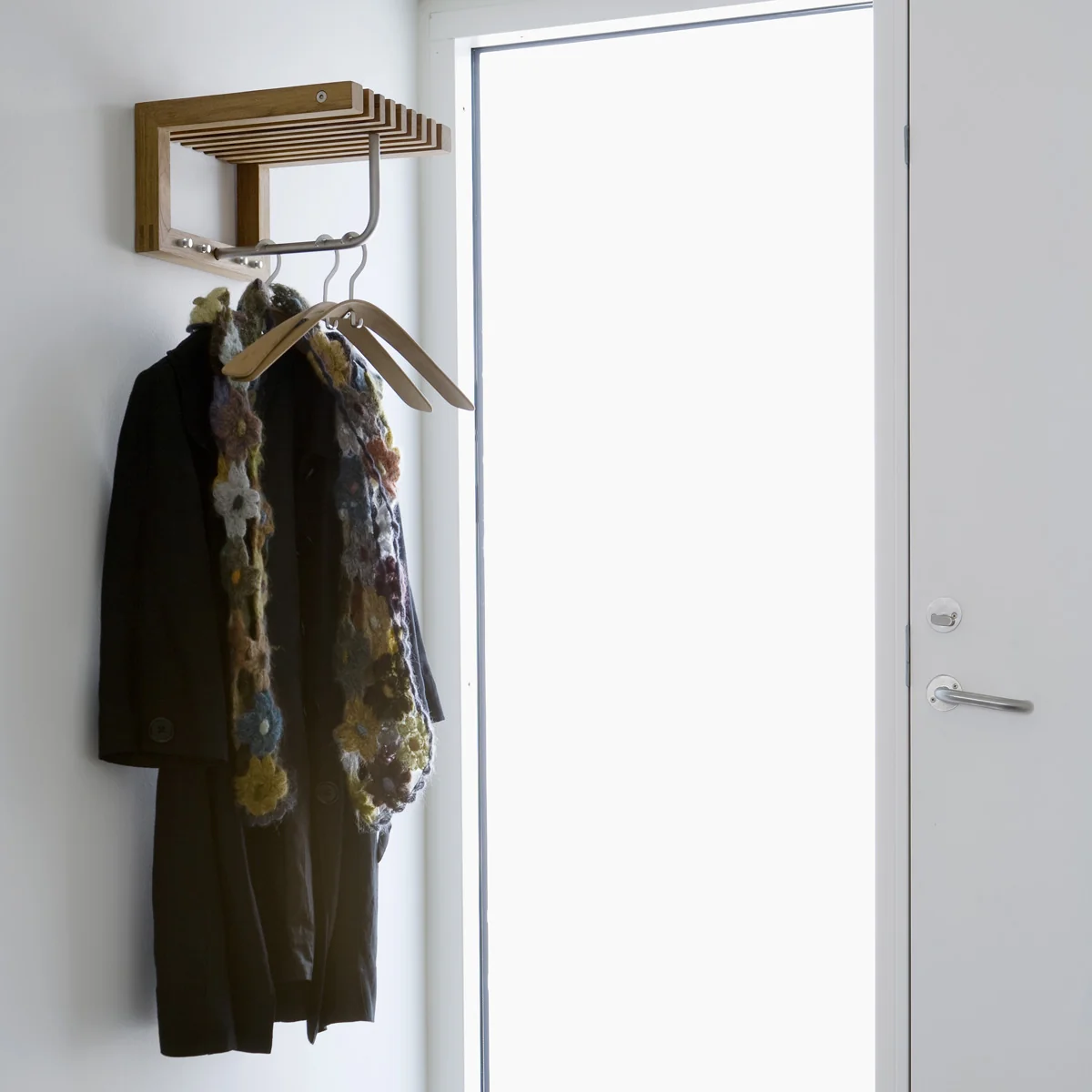 Die schmucke Schlichtheit der Cutter-Serie erwies sich jedoch auch als ideal für Diele, Badezimmer und Küche – ja im Grunde für alle Räume der Wohnung. Deshalb wurde sie um klassische Indoor-Produkte erweitert. Die Cutter Minigarderobe besteht wahlweise aus Teakholz oder Eiche. Die Stange der Cutter Garderobe besteht aus Edelstahl, was die klassische Holz-Optik um einen modernen Kontrast ergänzt.