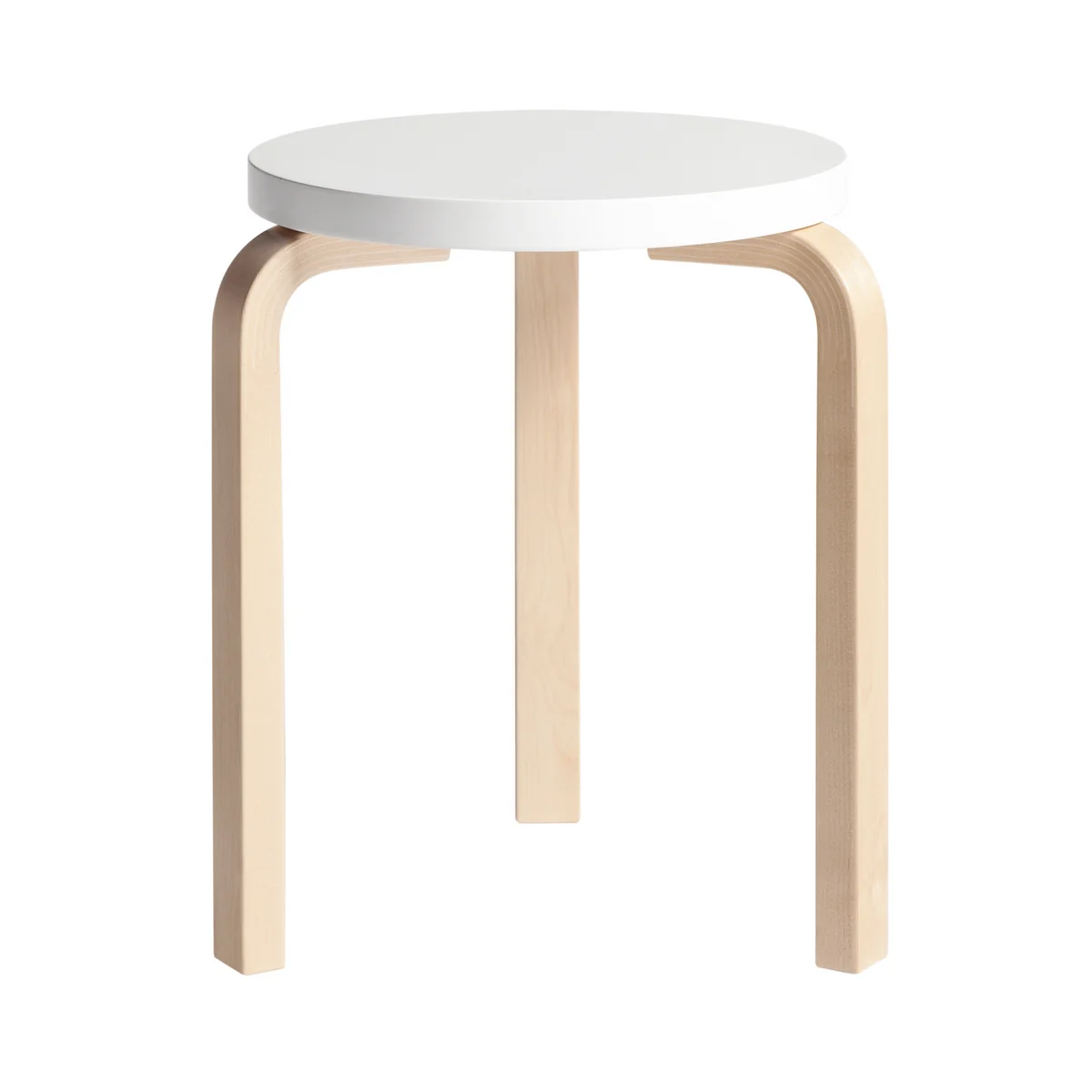 Der stapelbare Hocker 60 wurde 1933 von Alvar Aalto entworfen und von O.y. Huonekalu – ja Rakennustyötehdas hergestellt. Nach Gründung von Artek im Jahr 1935 wurde der Hocker in das Standardsortiment von Artek aufgenommen. In den 1940er-Jahren entwickelte sich der schlichte Dreibeiner zu einem famosen Bestseller. Das berühmte Design entstand für die Bibliothek in Viipuri und ging um die ganze Welt.
