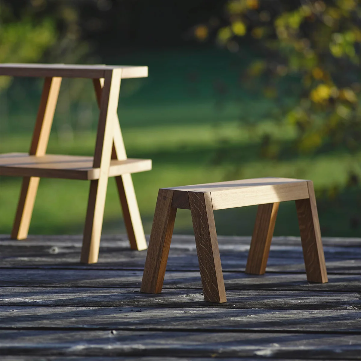Gerry Kellermann entwarf den "Kleinen Bruder", der nicht nur bestens mit seinem grossen Vorbild harmoniert, sondern auch in Kombination mit anderen Möbelstücken eine gute Figur macht. Aus geölter Eiche gefertigt eignet sich der Hocker von Auerberg zum Beispiel als Nachttisch, Beistelltisch, klassischer Tritthocker oder alternativer Beistelltisch.