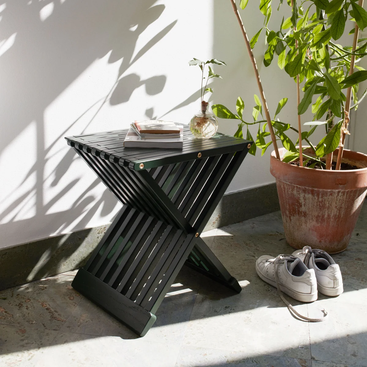 Auch der Skagerak Fionia Hocker ist Ausdruck hervorragenden Designs und Handwerks. Sogar zusammengeklappt ist der Fionia Hocker unglaublich elegant. Er kann überall im Haus als Hocker, Beistelltisch, Nachttisch oder als Blumentischchen benutzt werden. Jens H. Quistgaard liess sich für den Hocker von antiken Sitzmöglichkeiten aus dem römischen Reich inspirieren.