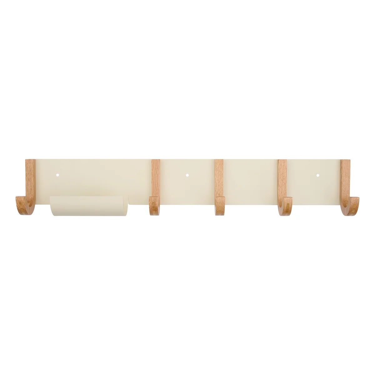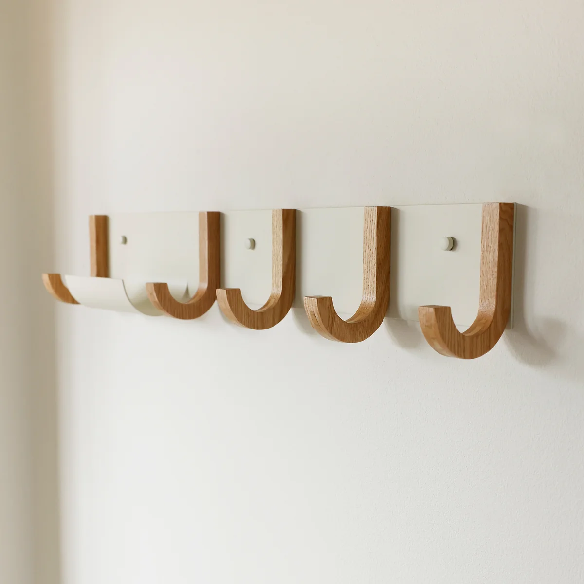 Die Jay Garderobe von Design Letters ist ein klassischer, minimalistischer Garderobenständer mit vier bis fünf Haken und - je nach Ausführung - einer kleinen, praktischen Ablagefläche, die sich perfekt zur Aufbewahrung von Gegenständen wie Schlüsseln, Geldbörsen oder Regenschirmen eignet. Jeder Haken bietet dank seines geräumigen Designs viel Stauraum und eignet sich daher sowohl für kleine Eingänge als auch für grosse Hallen.