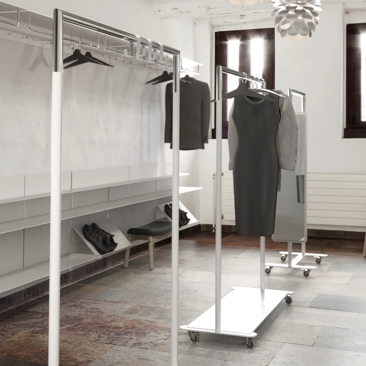 Erhältlich ist der Bukto Kleiderständer mit Rollen in verschiedenen Grössen und Farbvarianten.