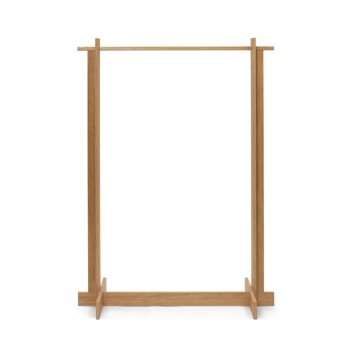 Der Bridge Kleiderständer des dänischen Herstellers Ferm Living ist eine moderne, minimalistische Aufbewahrungsmöglichkeit für allerlei Kleidungsstücke. Bridge ist von architektonischen Holzkonstruktionen inspiriert und besticht mit seiner luftigen, zeitlosen, klaren Linie. Der Kleiderständer wird aus FSC™-zertifiziertem Eichenfurnier mit MDF-Kern gefertigt.