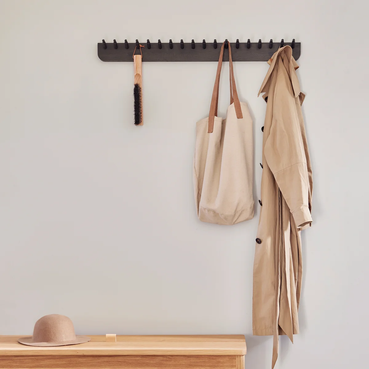 Die Echo Garderobenleiste von Form & Refine ist eine flexible Mehrzweckleiste mit einfachem, funktionellen Design. Dank Echo lassen sich Ihre Jacken, Mäntel, Hüte und Schal problemlos im Flur aufhängen. Die Schönheit der Leiste und die optimale Anordnung der Stifte schaffen ein strukturiertes Design. Die Stifte sind sorgfältig ausgearbeitet und verfügen über eine geschwungene Form. Die Leiste ist insgesamt so robust konzipiert, dass die Garderobe ein hohes Gewicht tragen kann.