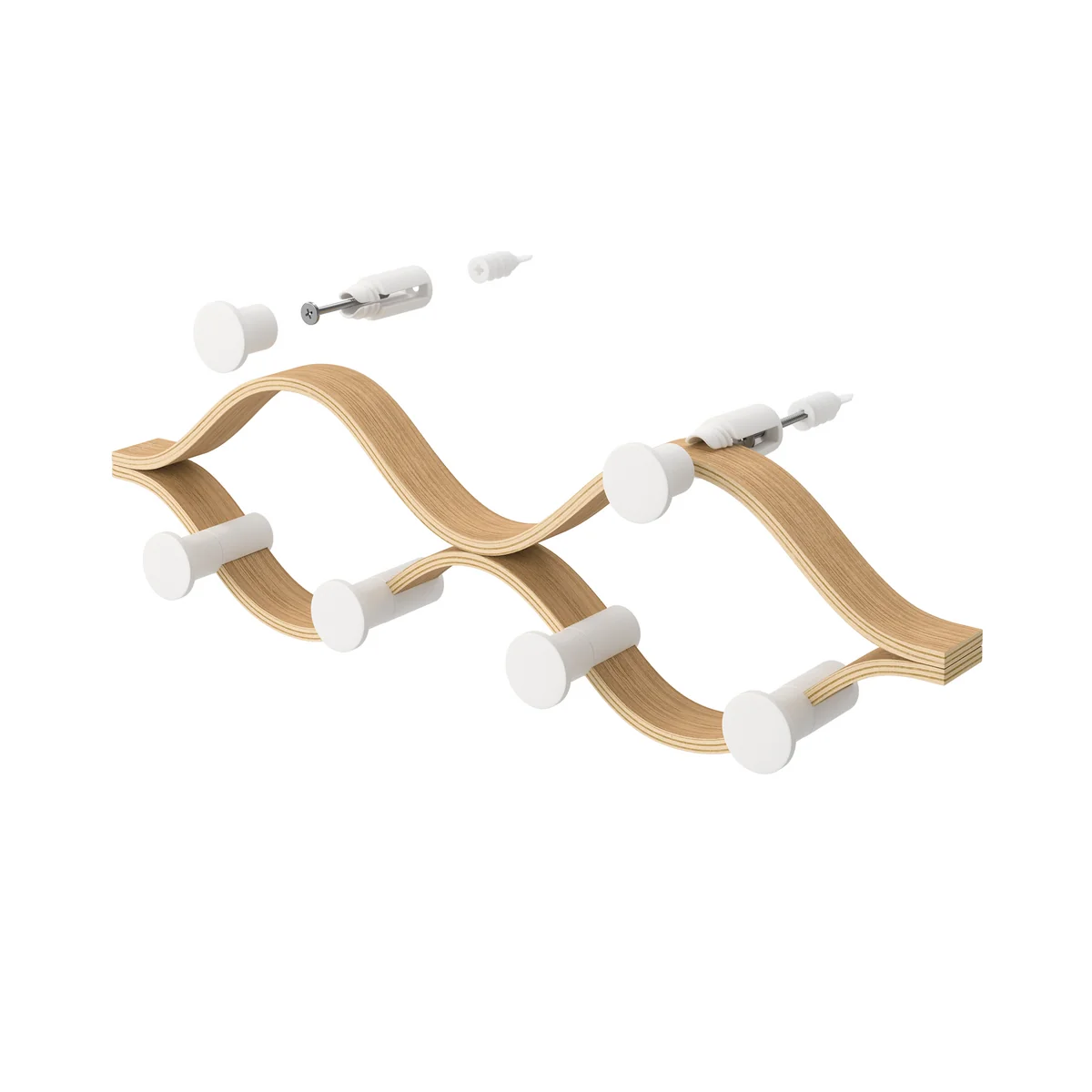Die Wandgarderobe von Umbra wird mit höchster Sorgfalt und aus einer einzigartigen Materialzusammensetzung gefertigt. Der Grossteil besteht aus 60% Gummiholz, das nicht nur für eine ansprechende Optik sorgt, sondern auch für eine hohe Stabilität und Langlebigkeit steht. Die Verwendung von 10% Eschenholz verleiht der Garderobe eine natürliche Note und betont ihre hochwertige Verarbeitung.