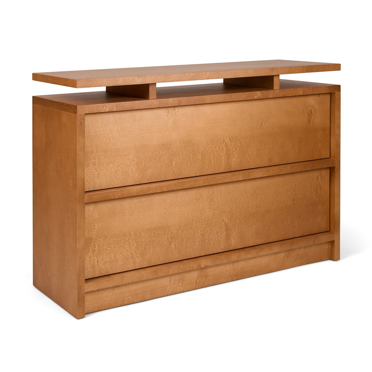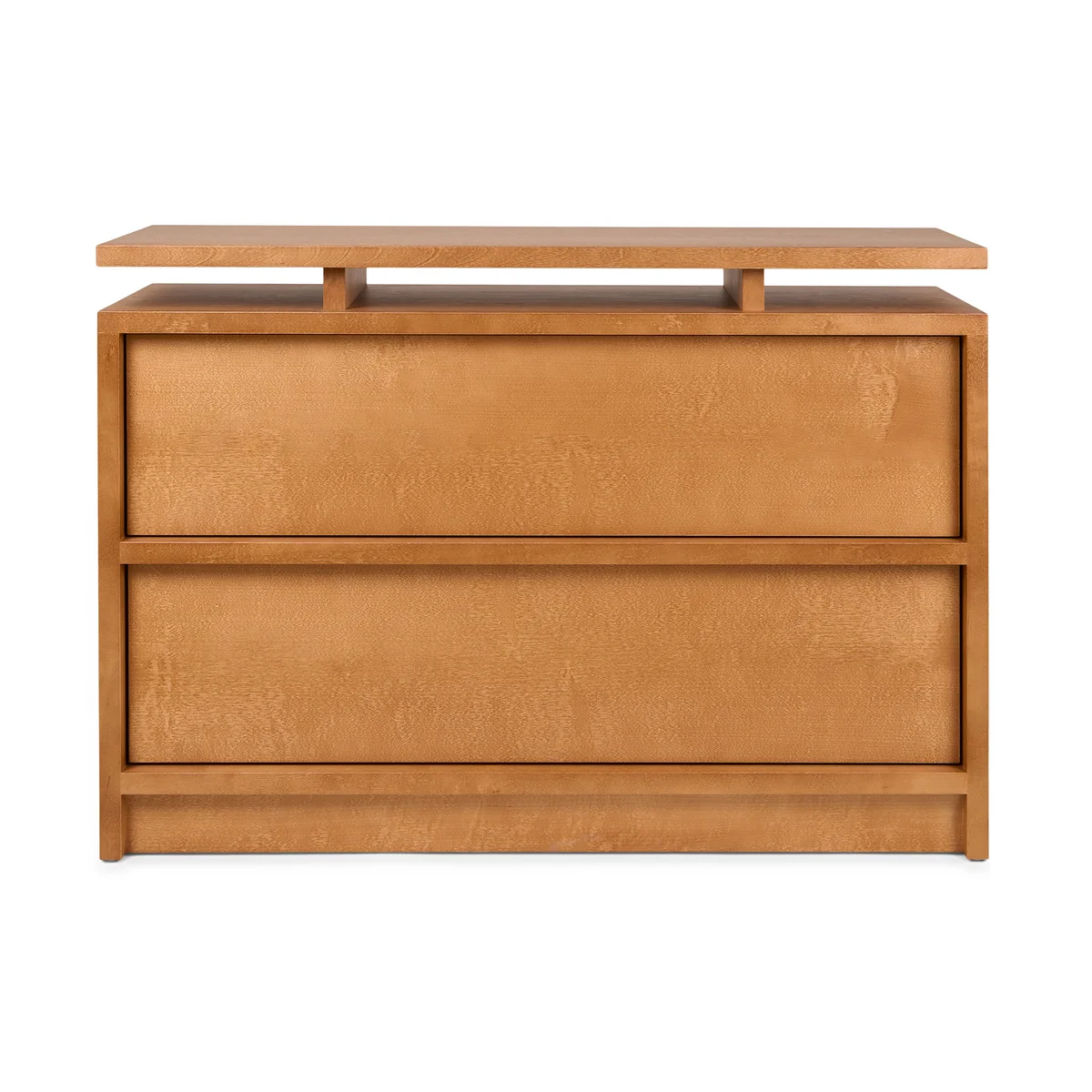 Die Ratio Kommode vereint grosszügigen Stauraum mit klarer Formensprache und warmer Materialität. Gefertigt aus MDF, Birkenfurnier und Massivbirke, präsentiert sie eine harmonische Maserung, die den natürlichen Charakter des Holzes unterstreicht. Die Kommode überzeugt mit zwei push-to-open Schubladen auf leisen Soft-Close-Schienen und einem offenen, dezent integrierten Fach im oberen Bereich. Mit ihrer zurückhaltenden, skulpturalen Präsenz fügt sie sich mühelos in verschiedene Wohnkonzepte ein – funktional, ehrlich und von zeitloser Schönheit.