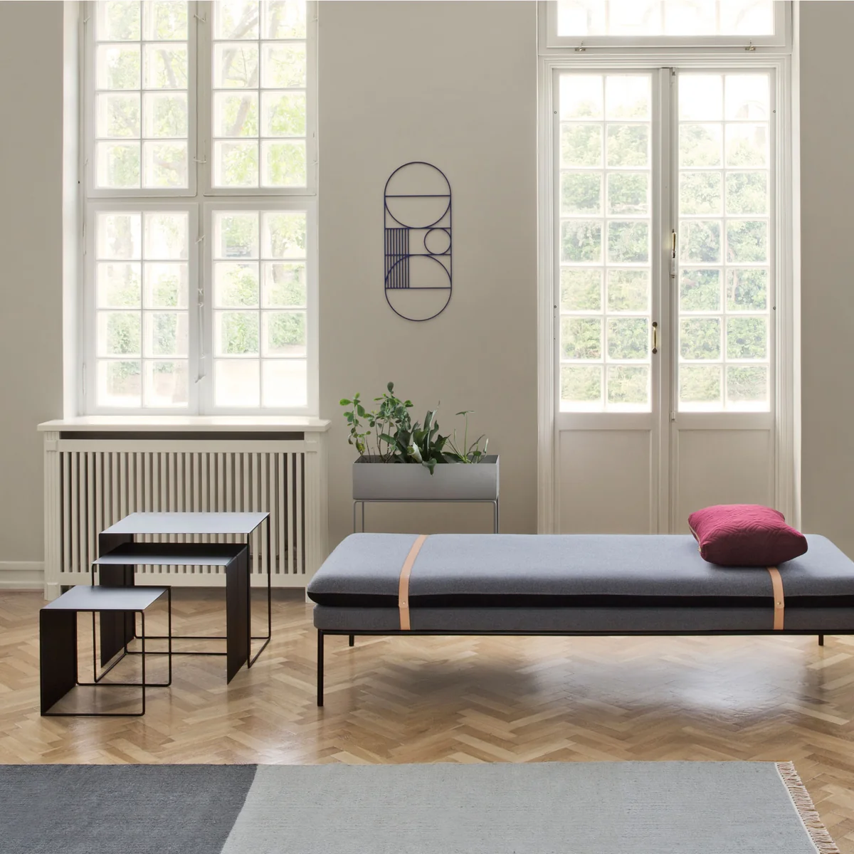 Gradlinig und elegant präsentiert sich das Turn Daybed von Ferm Living. Mit seinem zurückhaltenden Design und der Auswahl hochwertiger Materialien ist das Daybed ein willkommener Gast im Wohnbereich, wo es sowohl als Sofa-Alternative sowie auch als Bank genutzt werden kann und dort für entspannte Stunden sorgt.