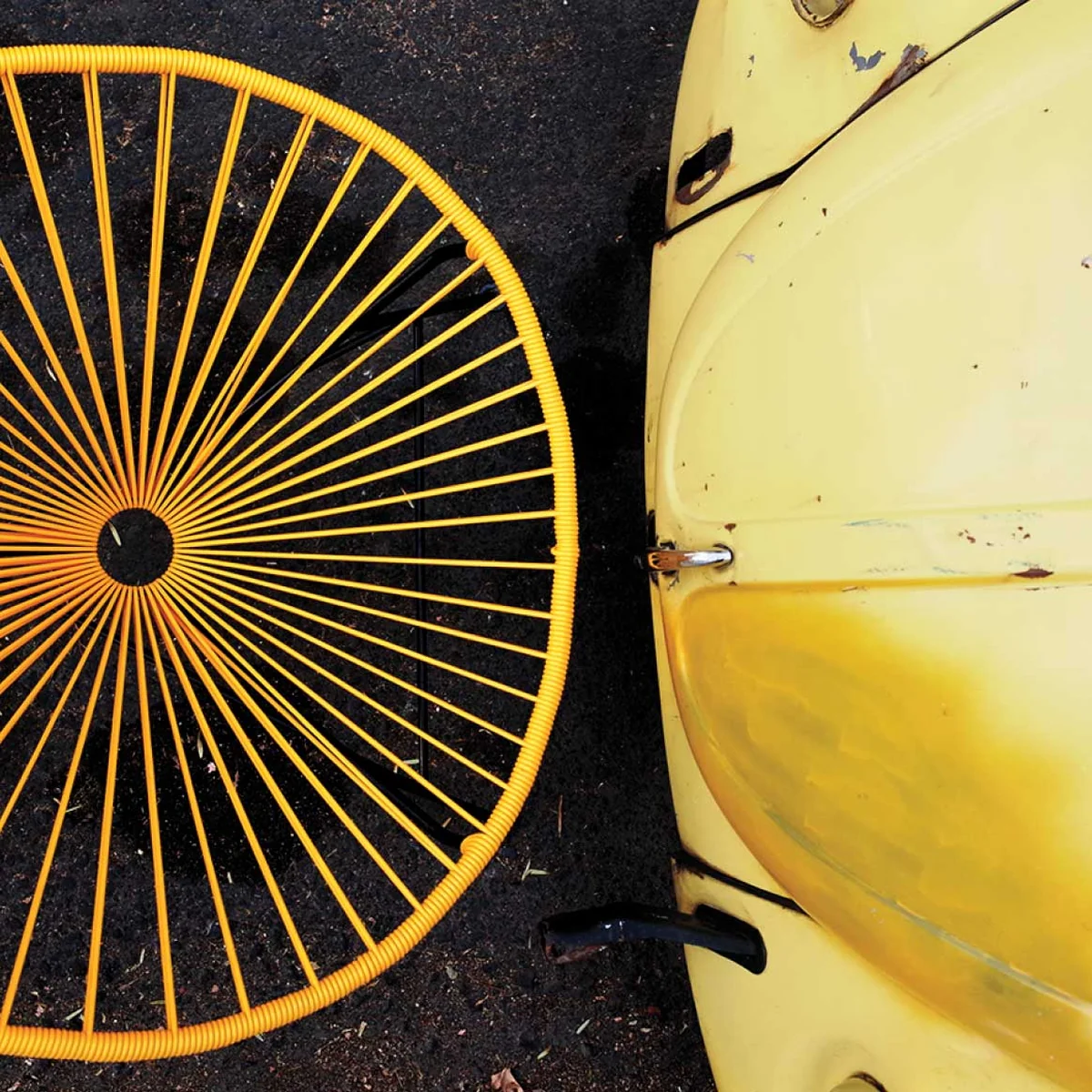 Der galvanisierte Stahlrahmen ist mit elastischen PVC-Bändern, die frei von Phtalaten und Schwermetallen sind, bespannt worden. Durch die grosszügige Form der Sitzschale passt sich das Material ergonomisch dem Körper an und weist damit einen hohen Komfort auf. Mit Kissen, Fellen oder leichten Decken dekoriert, kann dem Sessel zusätzlich eine individuelle Note verliehen werden.