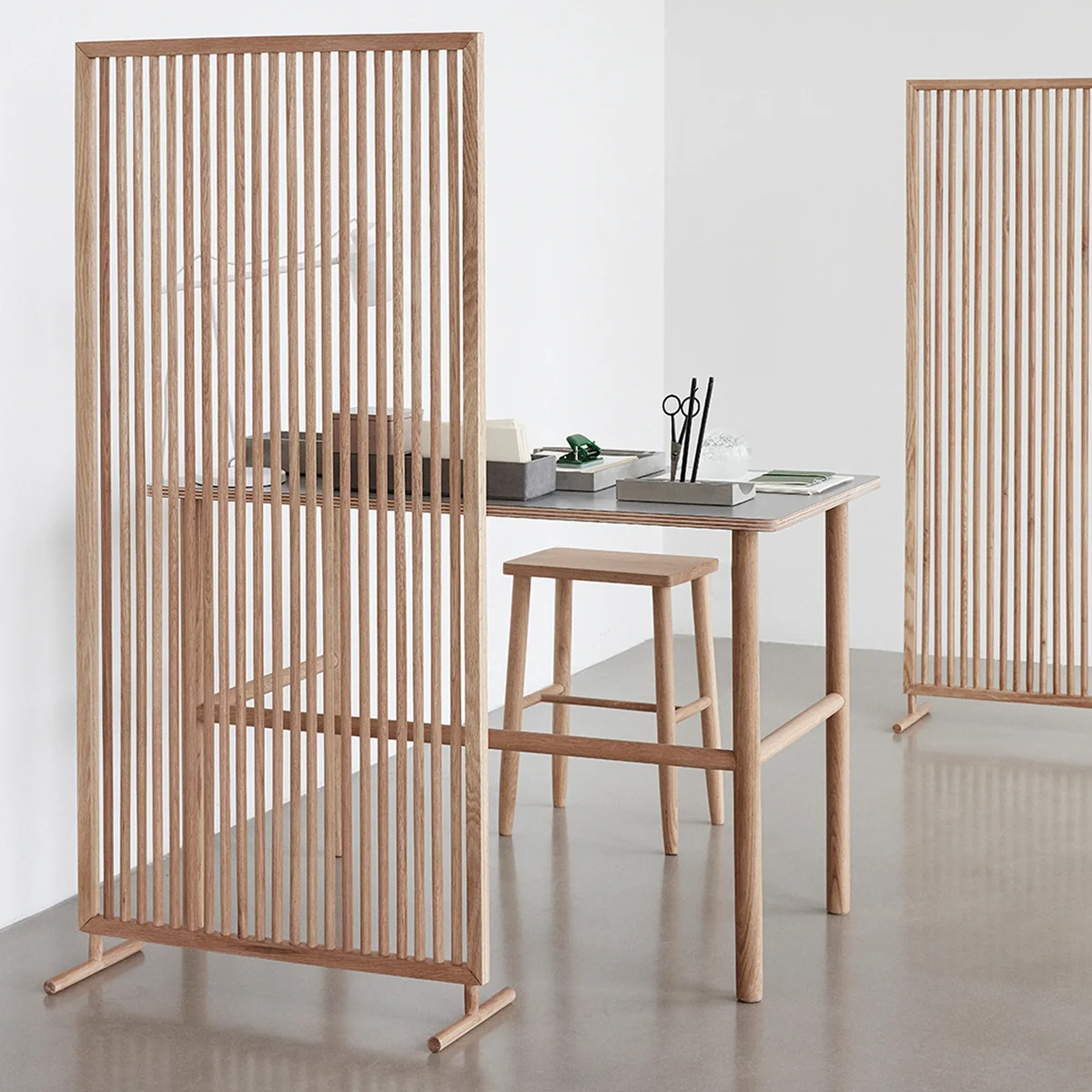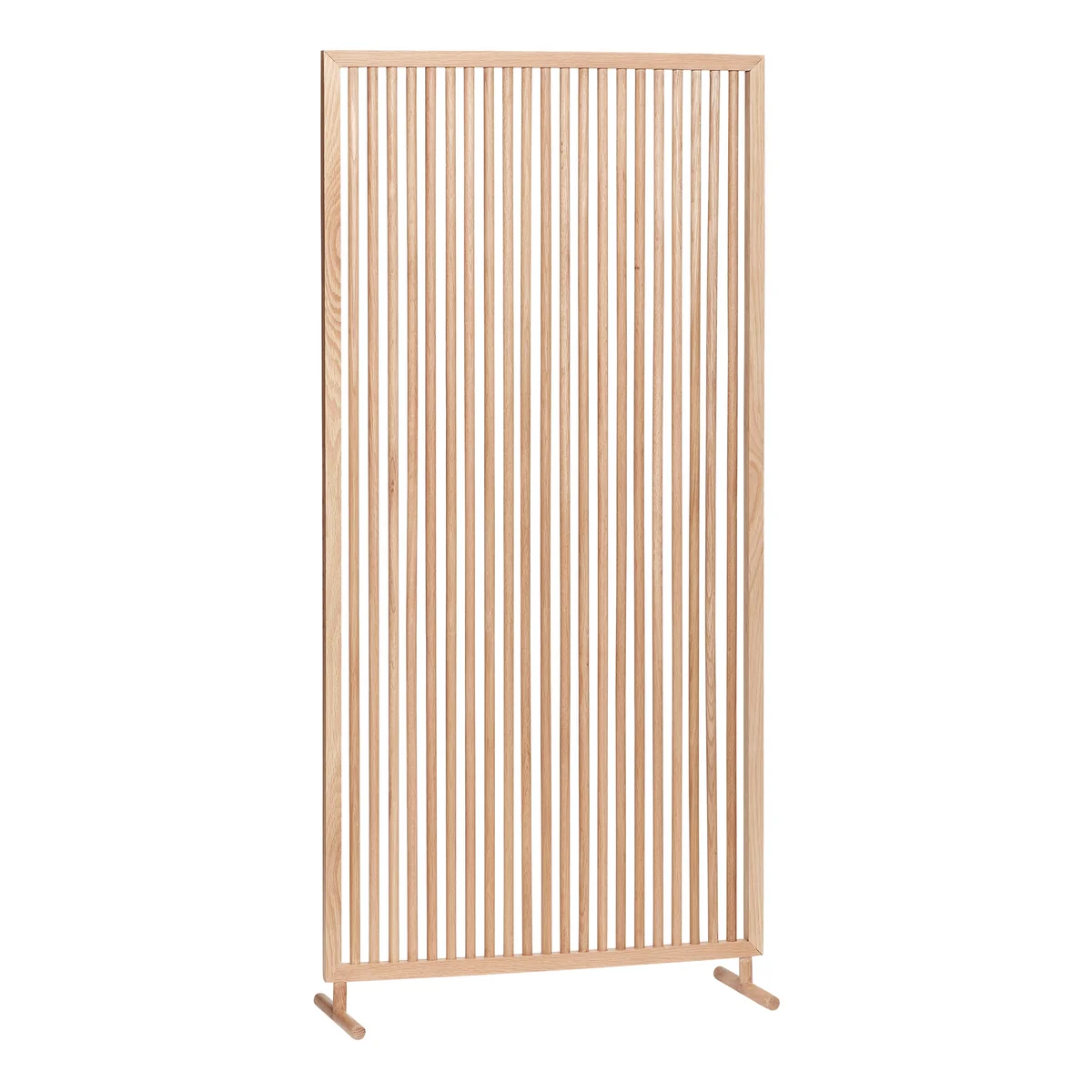Der Raumteiler von Hübsch Interior ist ein simpler und äusserst praktischer Aufsteller, der gleichzeitig sehr vielseitig einsetzbar ist: Als Sichtschutz im Büro, zur Unterteilung des Wohnzimmers, als Raumteiler im Homeoffice, zum Umkleiden im Schlafzimmer- die Möglichkeiten sind unbegrenzt. Der Raumteiler besteht aus einer vertikalen Gitterfläche aus Eichenholz-Streben, die den Raum aufteilen, ohne ihn wuchtig abzudunkeln. Hergestellt aus Eiche mit FSC®-Siegel.