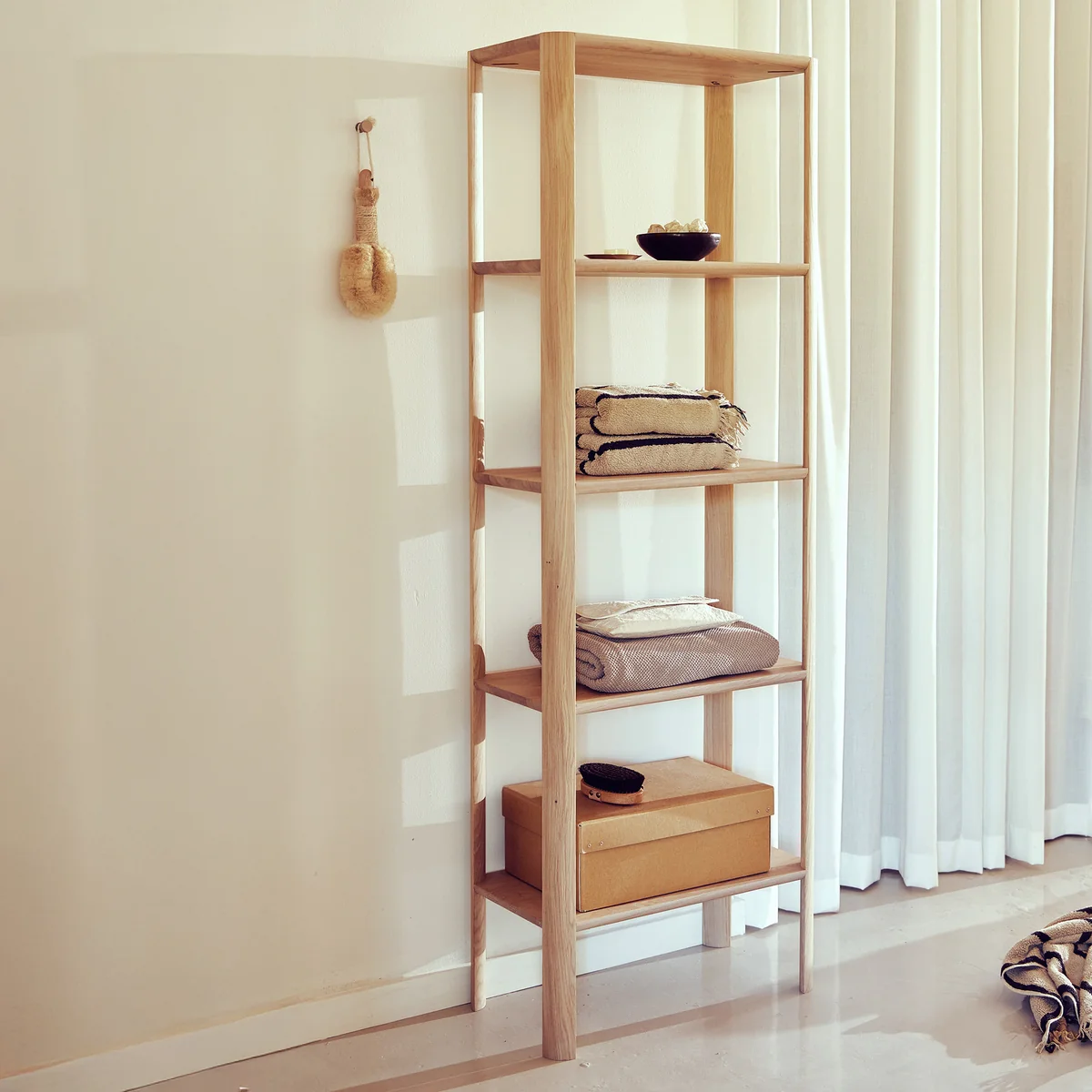 Besonders an dem Regal ist, dass es vollständig aus Reststücken von solider, europäischer Natureiche besteht und somit einen Beitrag zum Umweltschutz leistet. Das Produkt stammt aus der Form & Refine OffCuts Linie, bei der Materialreste und aussortierte Materialien von verschiedenen Herstellern verwendet werden, um neue Upcyling-Produkte mit ansprechender Form und hoher Qualität zu produzieren. Ausserdem ist das Regal in verschiedenen Grössen und Farbvarianten erhältlich.